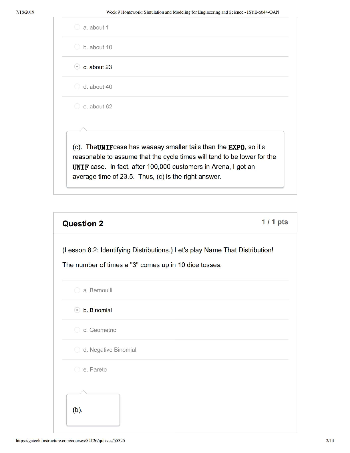 ISYE 6644 Simulation and Modeling Test Bank: Week 9 Homework Solutions (Based on Discrete-Event System Simulation, 5th Ed., by Banks, Carson, Nelson & Nicol)