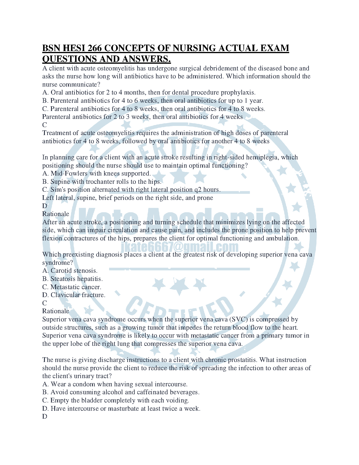 HESI 266 Concepts of Nursing BSN Exam Bank with Questions & Answers | Updated 2025/2026 Guide to Pass First Time