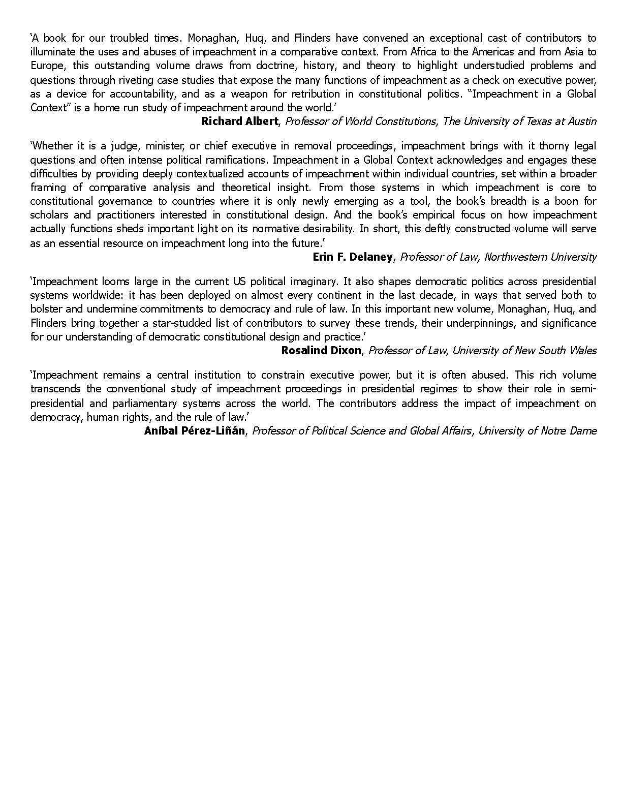 Impeachment in a Global Context: Law and Politics, 1st Edition by Chris Monaghan, Matthew Flinders, and Aziz Z. Huq | 2025/2026 First-Attempt Exam Success Guide