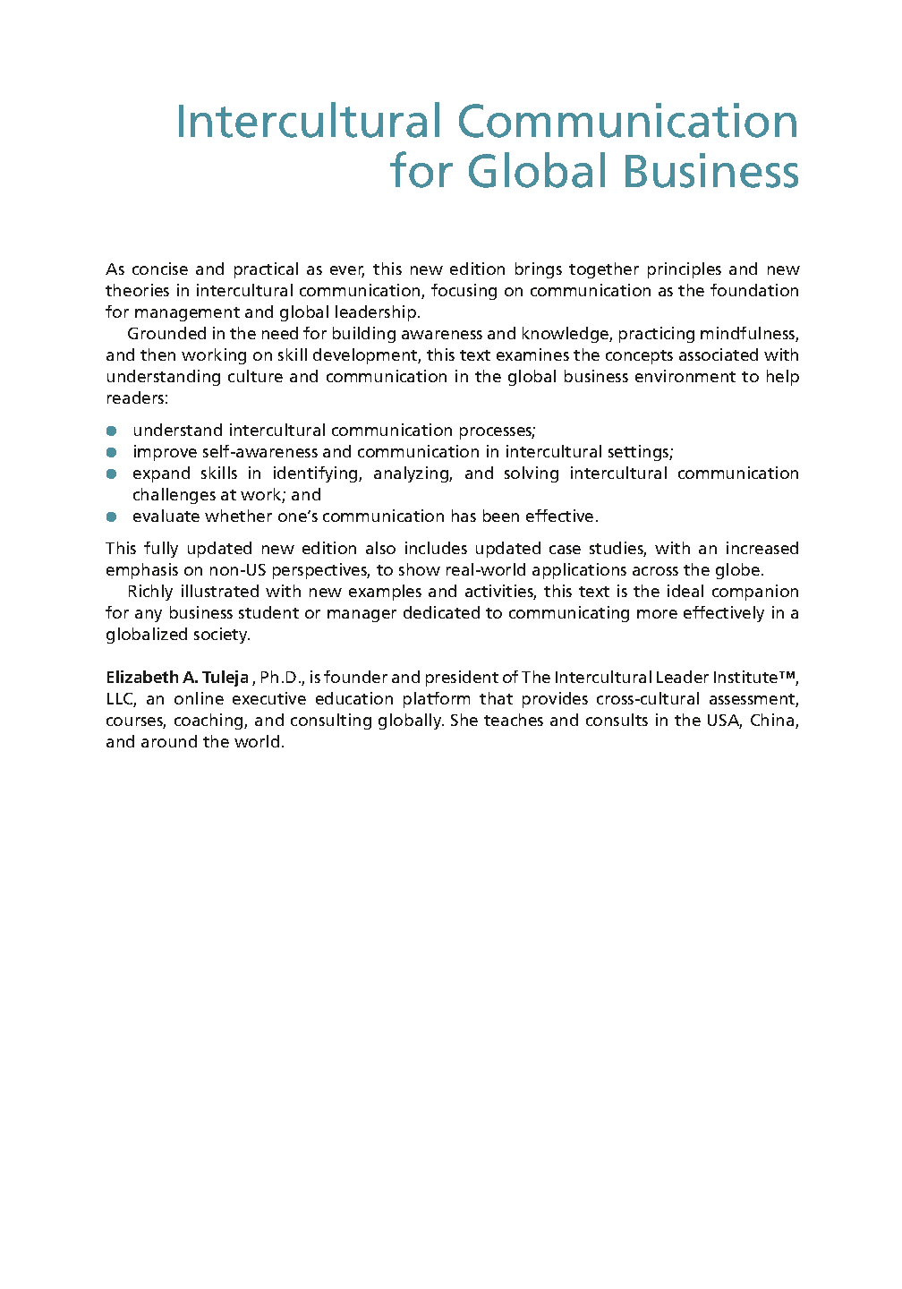 Unlock success in your global business course with our comprehensive guide for 'Intercultural Communication for Global Business,' Second Edition by Elizabeth A. Tuleja. This latest 2025/2026 version is expertly designed to help you master complex concepts in leadership and cross-cultural communication. Equip yourself with the knowledge to ace your exams on the first attempt and avoid costly resits. Ideal for students aiming for top grades.