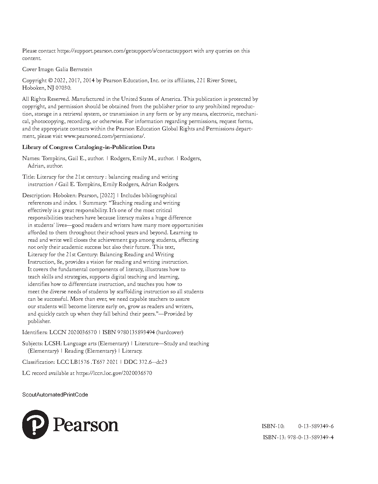 Test Bank for Literacy for the 21st Century: A Balanced Approach, 8th Edition by Gail E. Tompkins, Emily Rodgers, & Adrian Rodgers