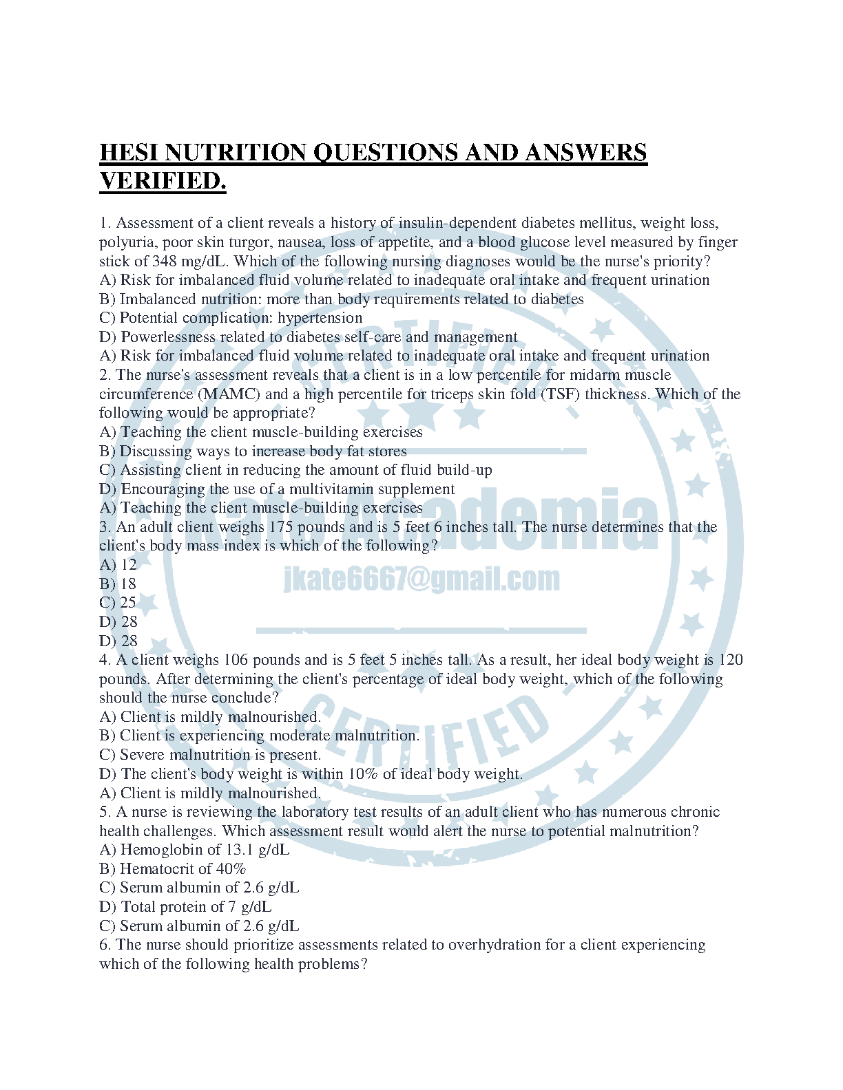 Ace your HESI Nutrition exam with this comprehensive and verified test bank for the 2025/2026 academic year. This essential study guide features a wide array of practice questions complete with detailed answers, covering all critical topics in nursing nutrition. This resource is your key to mastering complex concepts, boosting your confidence, and passing your HESI exam on the very first attempt. Avoid resits and achieve your academic goals with these expertly compiled questions and answers.