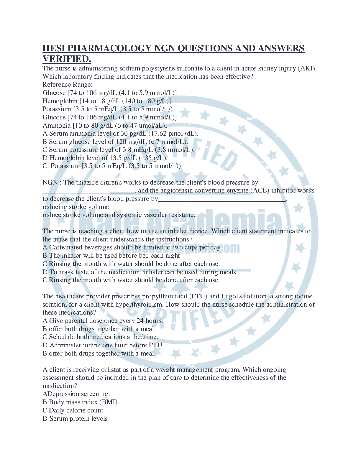 Ace your HESI Pharmacology NGN Exit Exam with our comprehensive and verified test bank, newly updated for the 2025/2026 academic year. This essential study guide is packed with practice questions and detailed answers that mirror the actual exam format, focusing on critical pharmacology concepts. Master topics such as medication administration for renal failure, cardiovascular drugs, respiratory inhaler techniques, and endocrine system medications. Designed to help you study smarter, not harder, this resource is your key to building confidence and passing the HESI exam on your very first try, avoiding costly and stressful resits.