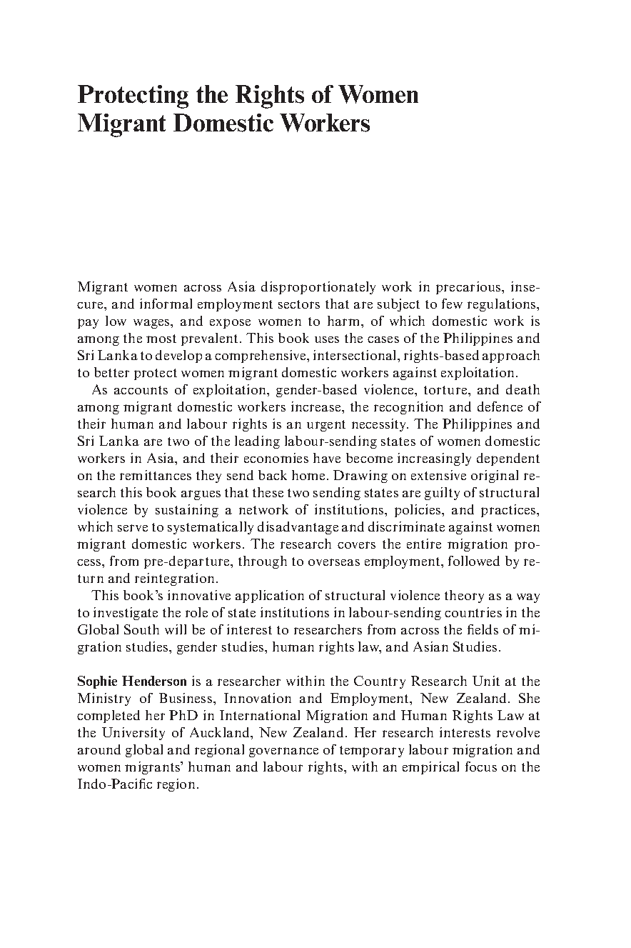 Unlock exam success for the 2025/2026 academic year with this essential resource on the rights of women migrant domestic workers. Authored by Sophie Henderson, this guide delves deep into the critical issues of structural violence and competing interests, using detailed case studies from the Philippines and Sri Lanka. This comprehensive analysis is perfectly structured to help you understand complex socio-legal frameworks, master key concepts, and pass your exams on the first try. Say goodbye to resits and gain a thorough understanding of Asian migration, labor rights, and international law.