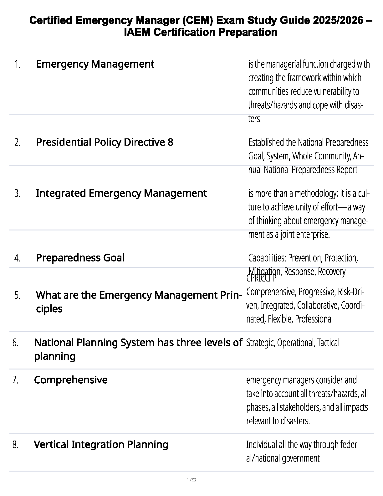 Achieve your Certified Emergency Manager (CEM) credential with confidence using this comprehensive study guide for the 2025/2026 IAEM exam. This essential resource is meticulously designed to help you master all core concepts, including Emergency Management Principles, National Planning Systems, and key policy directives. Our guide breaks down complex topics into easy-to-understand definitions and explanations, ensuring you are fully prepared for exam day. Stop worrying about resits and fast-track your career by passing the CEM certification on your very first try with this up-to-date and targeted preparation tool.