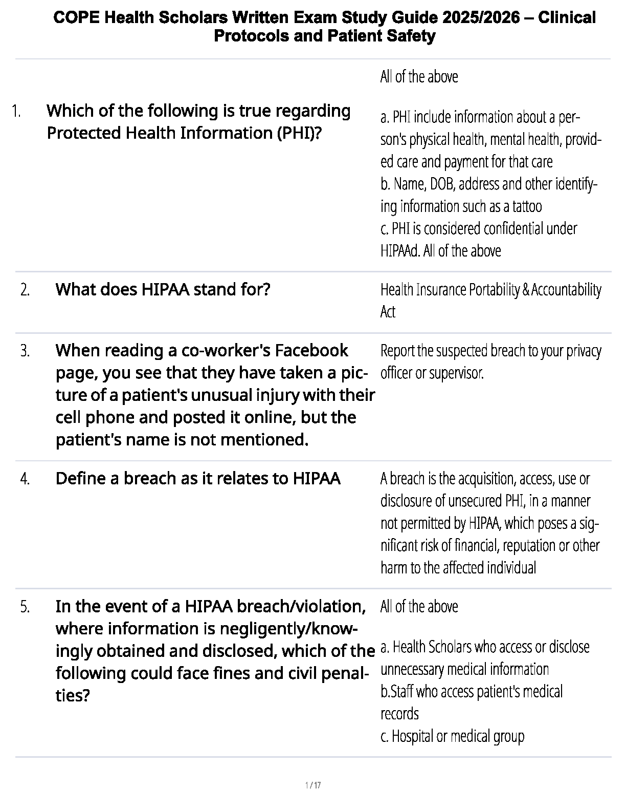Latest 2025/2026 COPE Health Scholars Written Exam Study Guide: Clinical Protocols & Patient Safety Q&A for a First-Time Pass