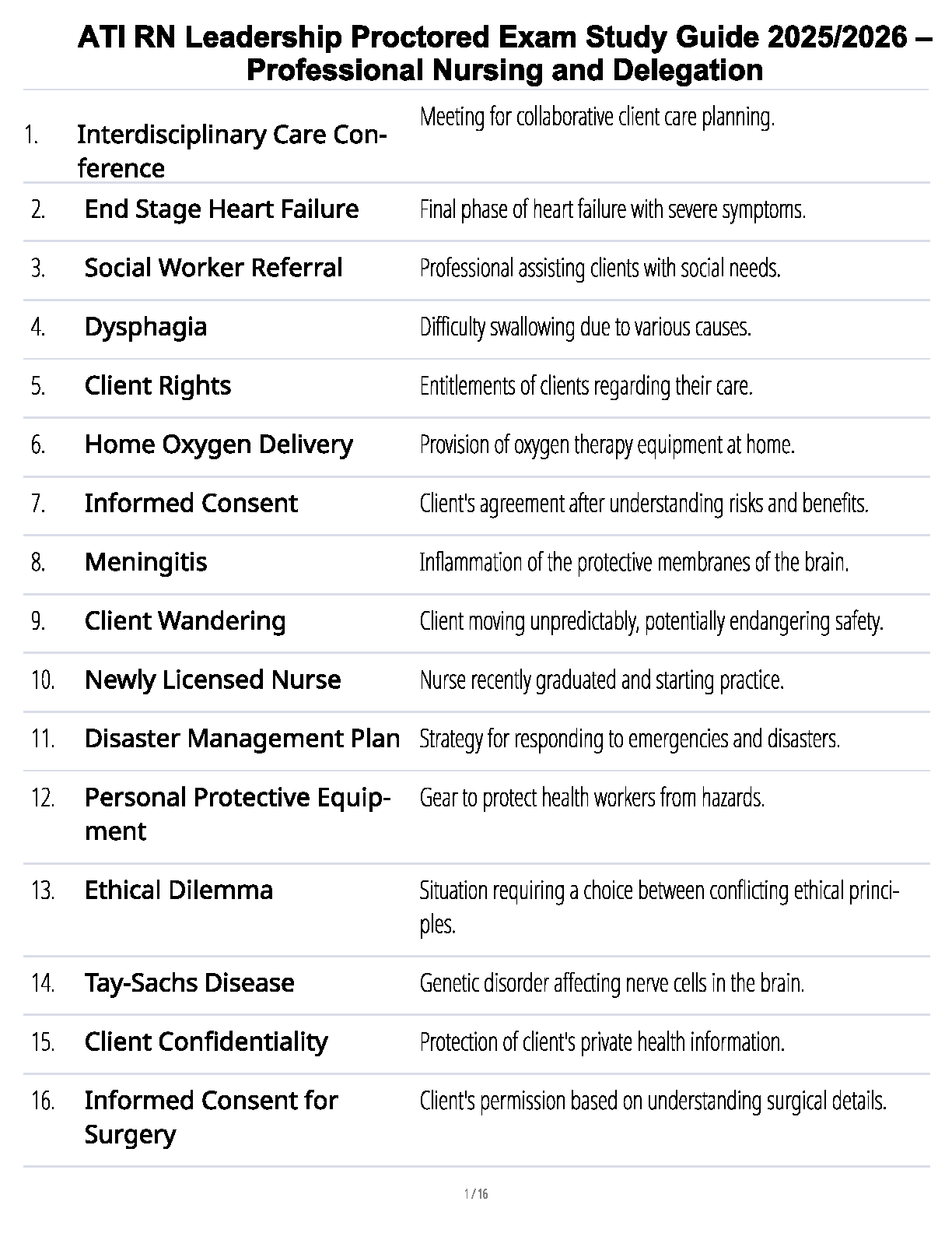 Ace your ATI RN Leadership Proctored Exam with our comprehensive 2025/2026 study guide. This essential resource covers all critical topics in Professional Nursing and Delegation, providing clear definitions and explanations to ensure you grasp key concepts. Designed to help you study smarter, not harder, this guide is your ultimate tool to pass the exam confidently on your first attempt and avoid costly resits. Get the latest, most up-to-date material and secure your success in nursing leadership.
