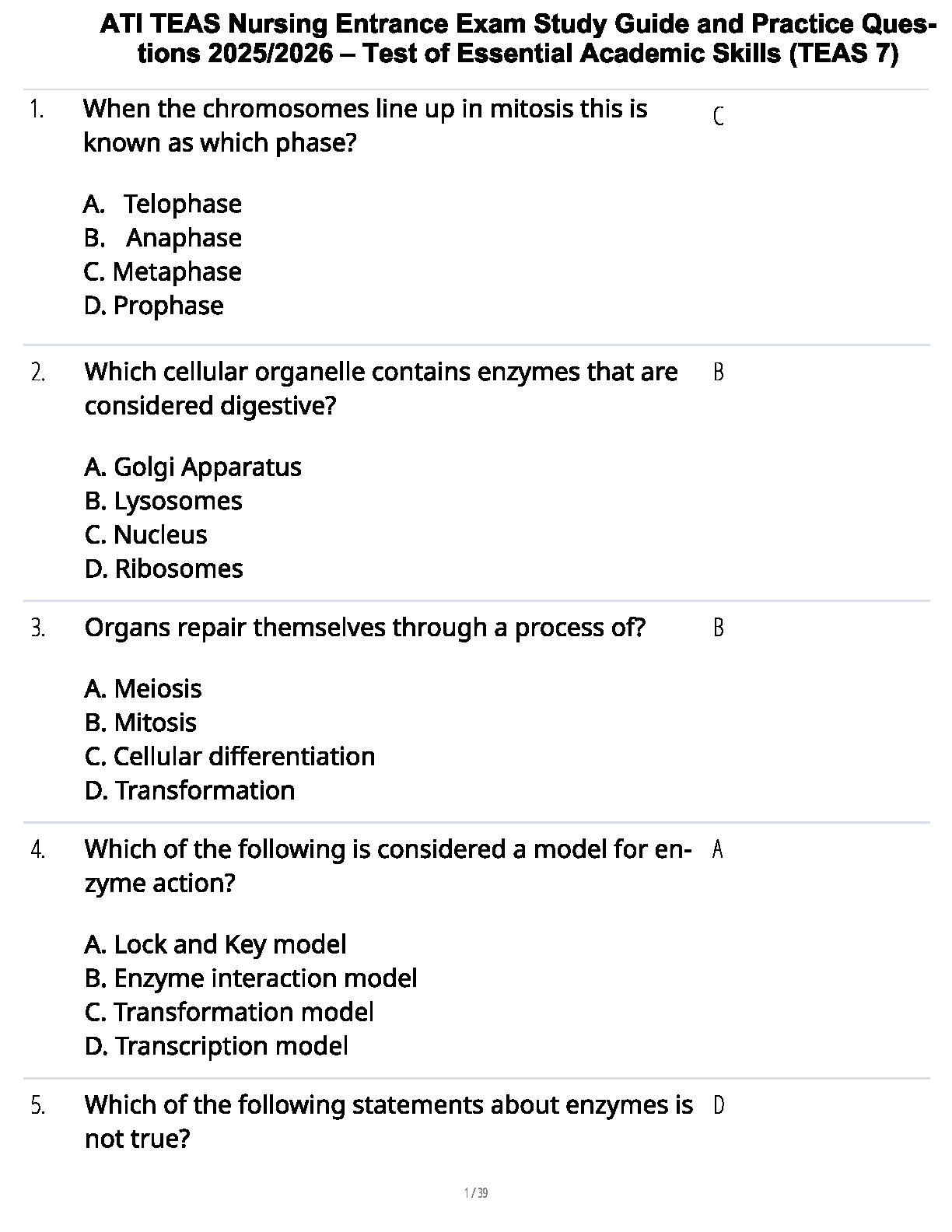 Ace the ATI TEAS 7 exam and secure your spot in nursing school with our latest 2025/2026 study guide. This comprehensive resource is packed with a wide range of practice questions, complete with verified answers, mirroring the actual Test of Essential Academic Skills (TEAS 7). Designed to help you master key concepts and pass on your very first try, this guide is your essential tool for success. Avoid the stress of resits by preparing with the most up-to-date material available.