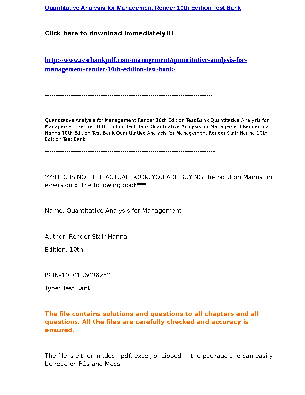 TEST BANK FOR Quantitative Analysis for Management Render 10th Edition