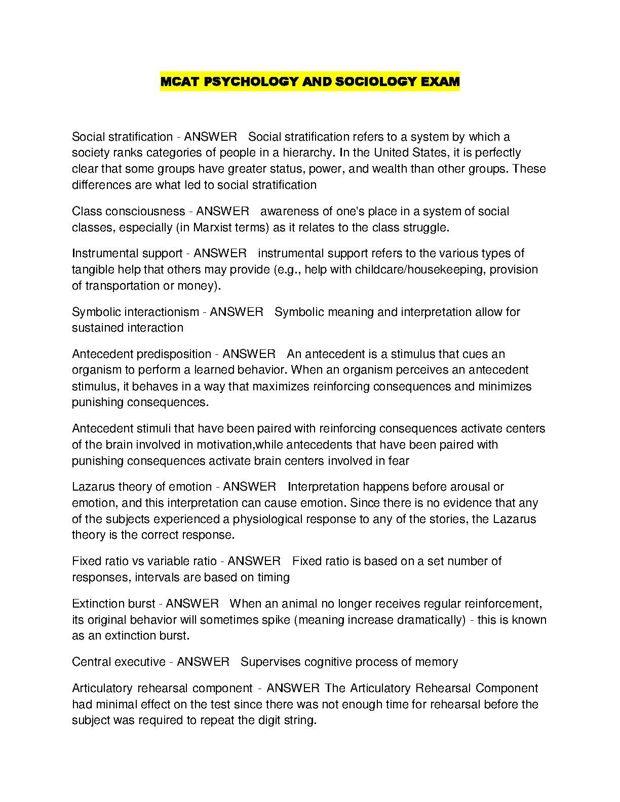 Unlock your top score on the MCAT with our comprehensive Psychology and Sociology Exam Elaboration for the 2025/2026 academic year. This essential study guide breaks down complex concepts into easy-to-understand definitions and explanations, covering crucial topics like social stratification, class consciousness, theories of emotion (e.g., Lazarus theory), cognitive processes, and more. Designed to help you master the material efficiently, this resource is your key to walking into the exam with confidence and passing on your very first attempt. Avoid resits and secure your future in medical school with this targeted prep tool.