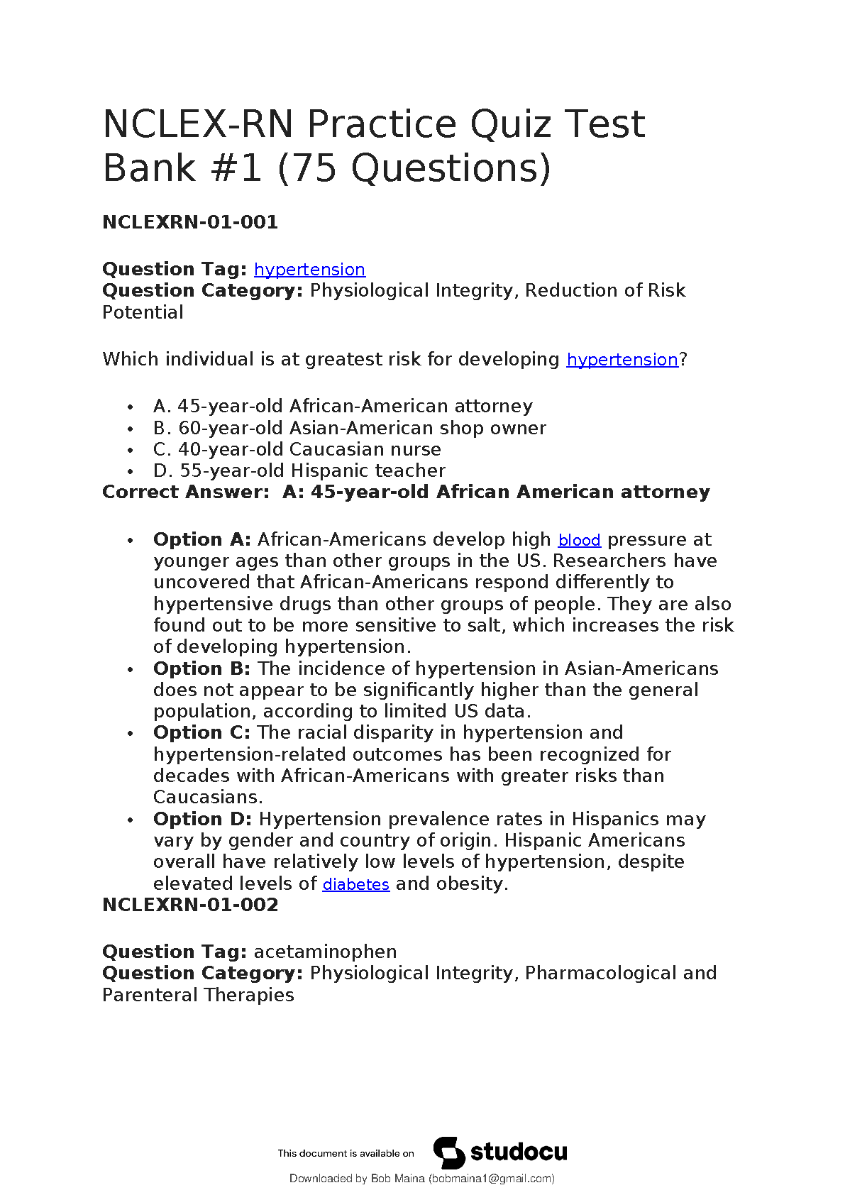 NCLEX-RN Test Bank: Practice Quiz 1 with Comprehensive Questions and Expert Rationales