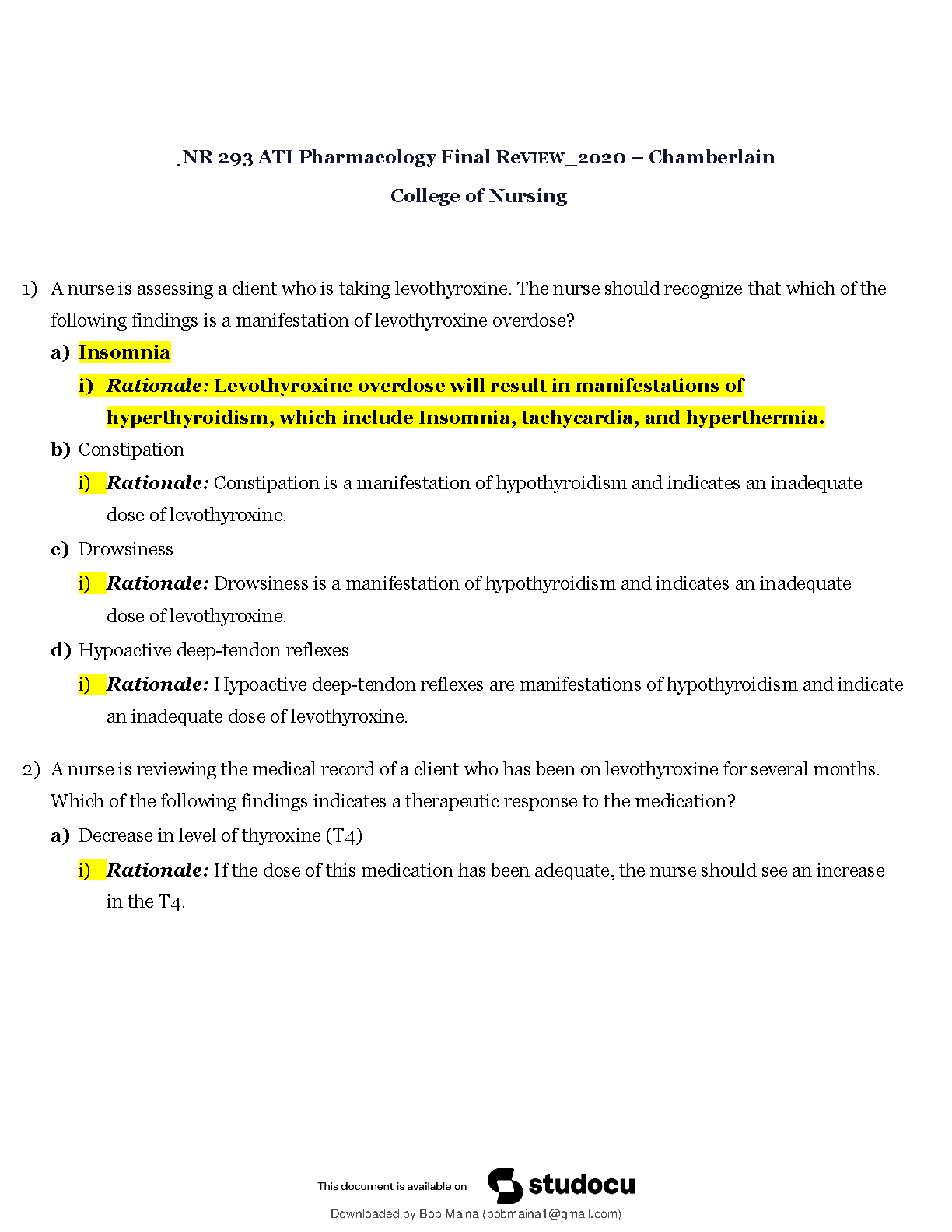 Ace your NR 293 ATI Pharmacology final exam with ease! This comprehensive final review guide, specifically tailored for students at Chamberlain College of Nursing, is your ultimate resource for the 2025/2026 academic year. It covers all essential pharmacology topics, key drug classes, and critical nursing considerations to ensure you are fully prepared. Designed to help you master the material efficiently, this guide is your key to passing on the first attempt and avoiding costly resits. Get the A-grade you deserve!