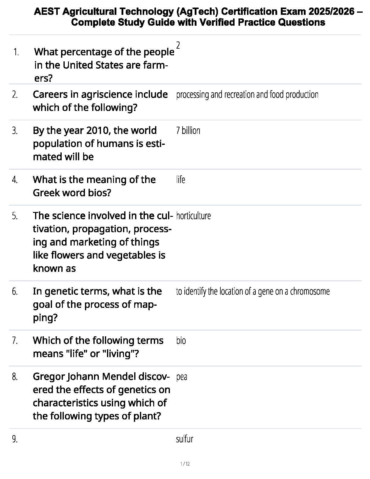 AEST AgTech Certification Exam Guide 2025/2026: Ultimate Study Resource with Verified Practice Questions for First-Attempt Success
