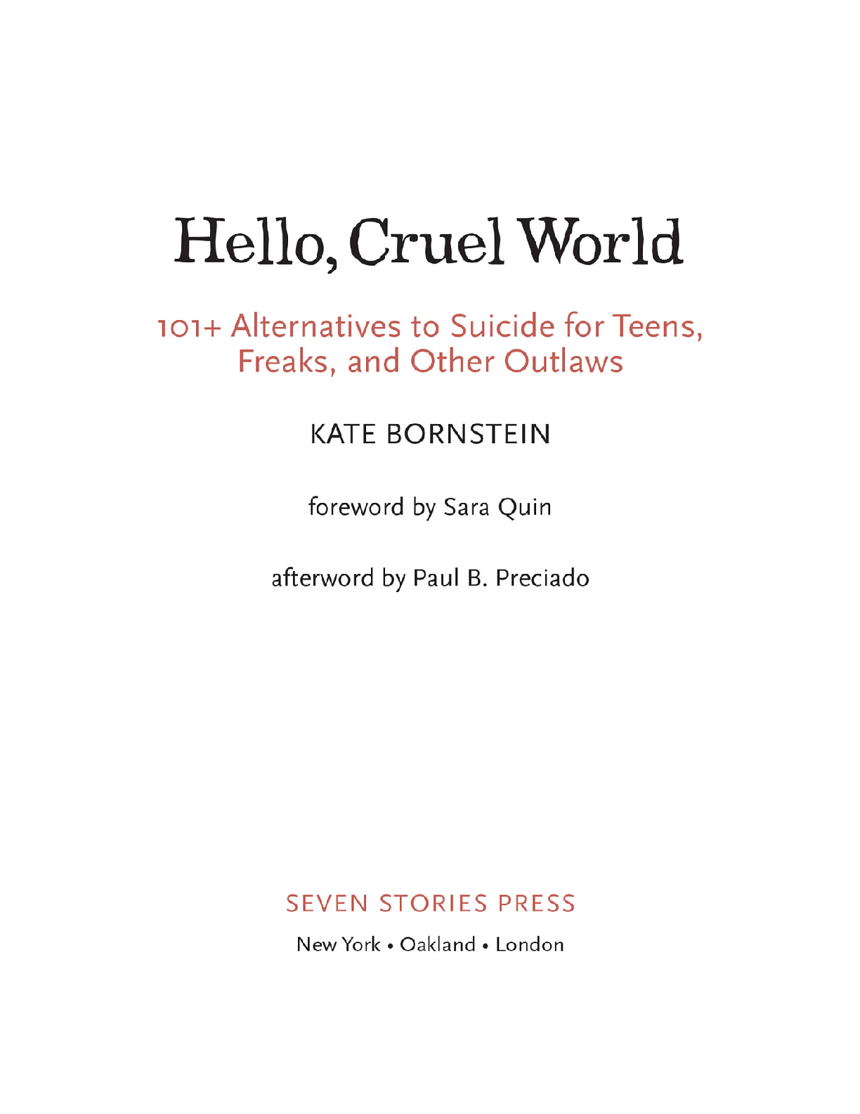 Hello, Cruel World: 101+ Alternatives to Suicide for Teens, Freaks & Other Outlaws - Second Edition by Kate Bornstein