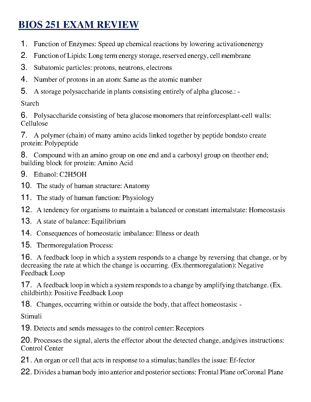 BIOS 251 Anatomy and Physiology Exam Review 2025/2026: The Ultimate Study Guide to Help You Pass on Your First Attempt