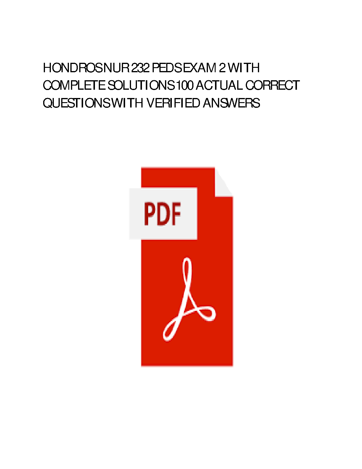 Hondros NUR 232 PEDS Exam 2 Test Bank | 100 Actual Questions with Complete, Verified Solutions