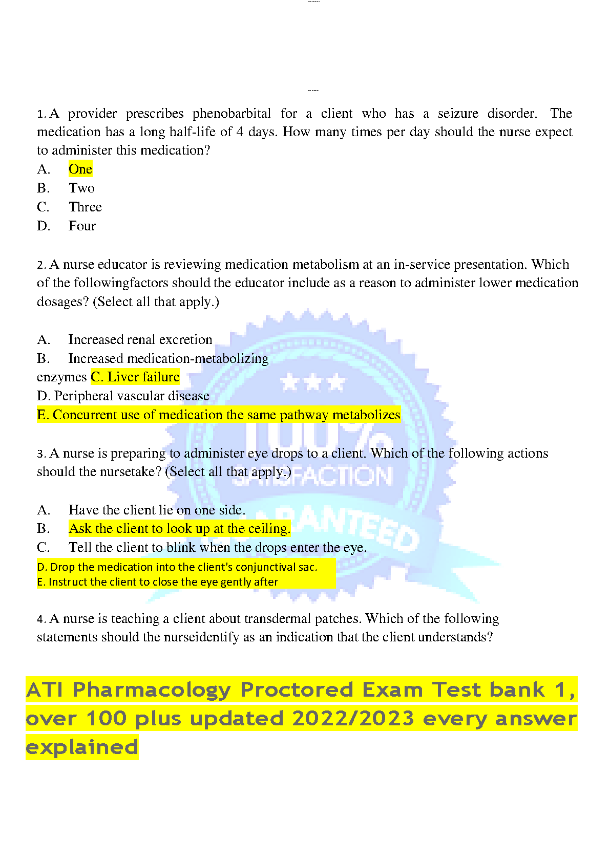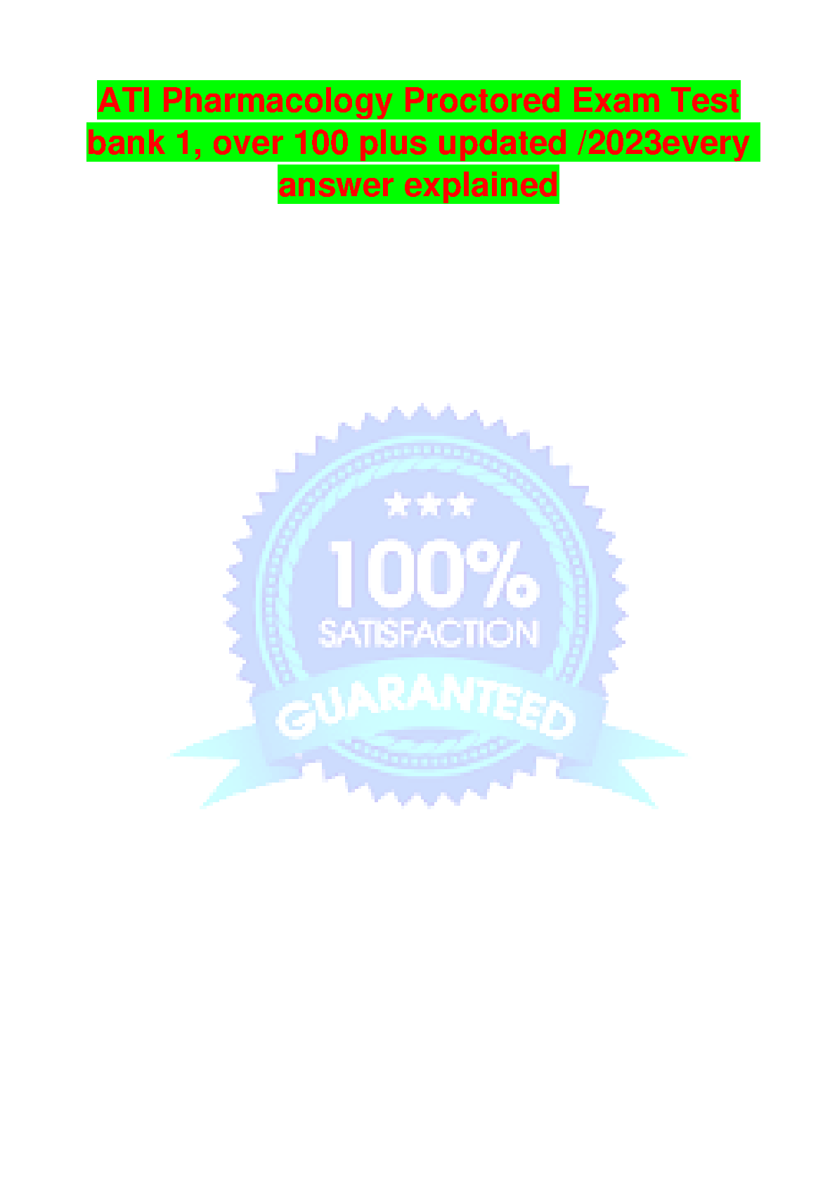 Ace your nursing program with our comprehensive Test Bank for the ATI Pharmacology Proctored Exam. This 2023 updated resource features over 100 meticulously crafted questions designed to mirror the actual exam format. Each question comes with a detailed, step-by-step explanation, ensuring you not only know the right answer but also understand the core pharmacological concepts behind it. This is the ultimate study guide to help you master complex topics, boost your confidence, and pass the ATI Pharmacology Proctored Exam on your very first attempt. Stop stressing and start studying smart with a resource guaranteed to help you succeed!