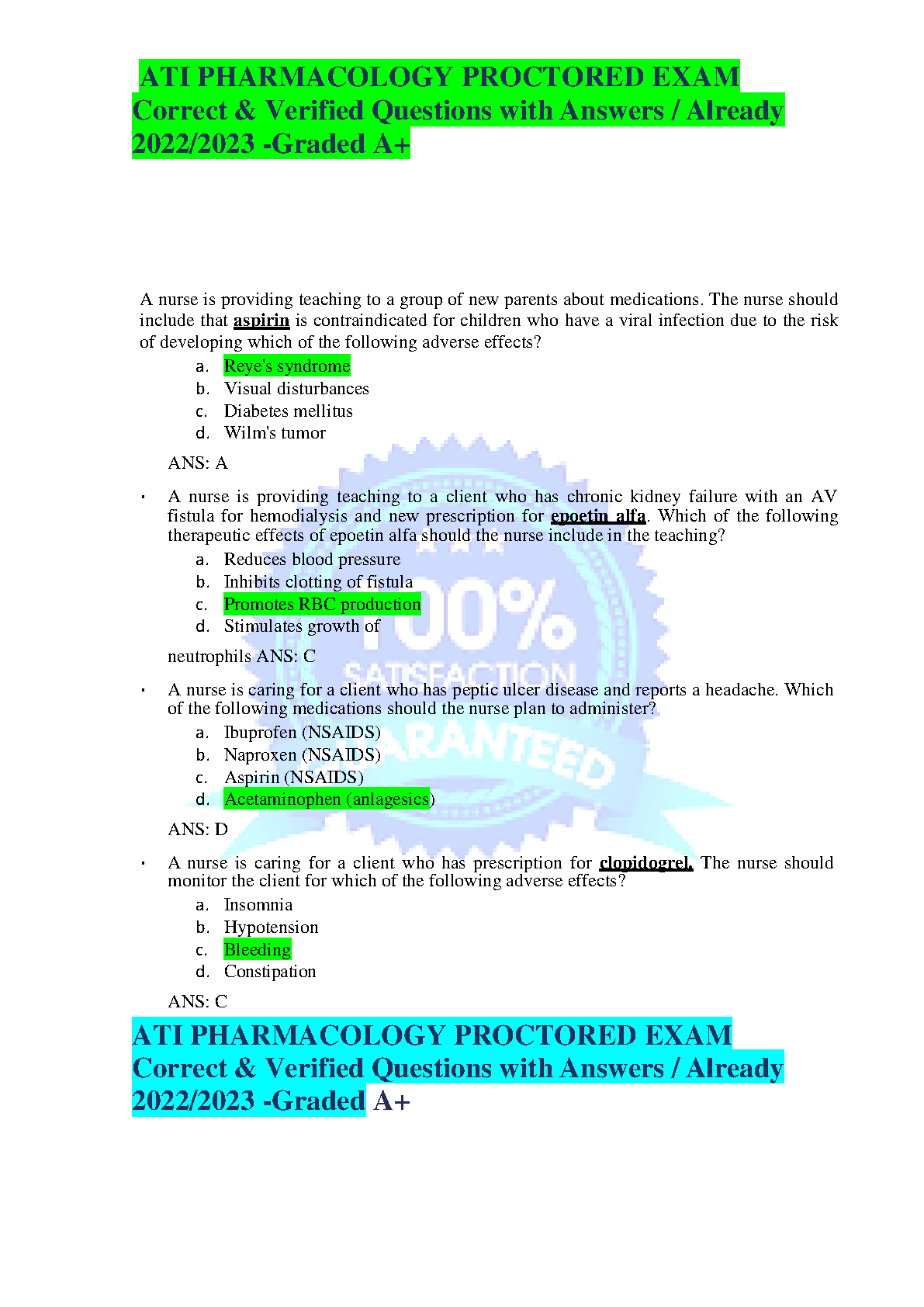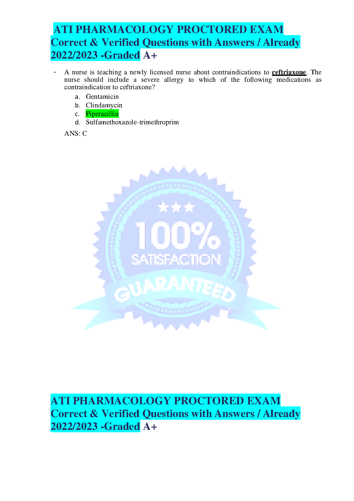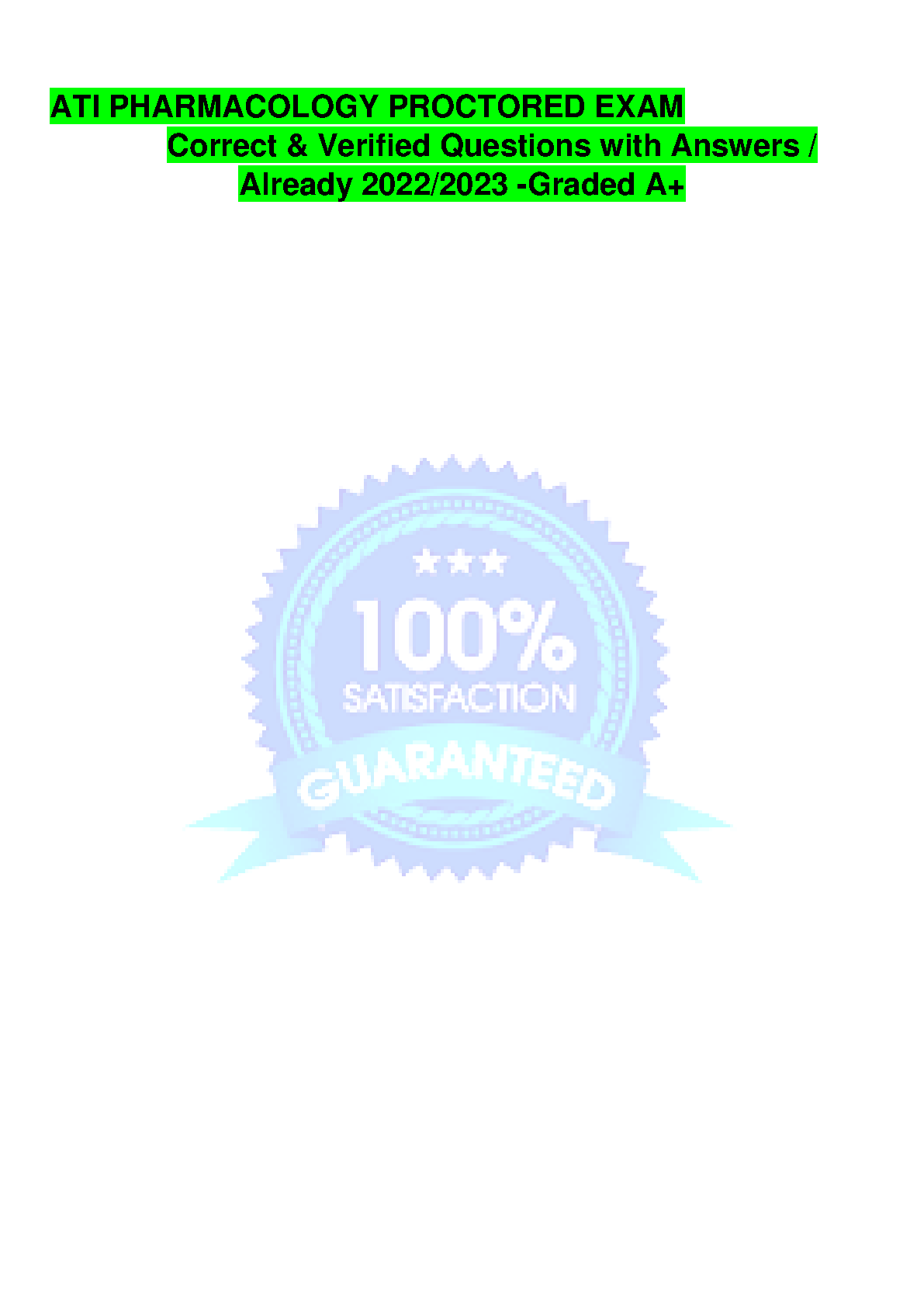 ATI Pharmacology Proctored Exam 2024-2025: A+ Graded Study Guide with Correct Questions and Verified Answers
