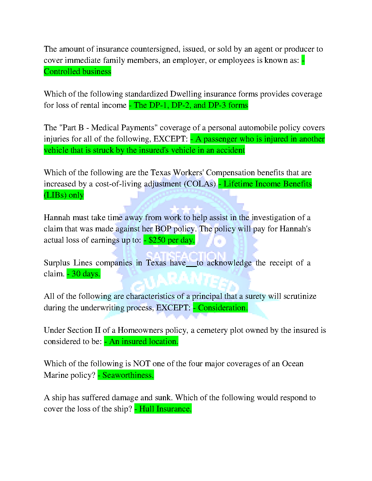 Ace your Texas All Lines Adjuster certification with ease! This comprehensive study guide, updated for the 2025/2026 academic year, provides a complete bank of 378 practice questions, each with a verified and accurate answer. Master key concepts across all essential insurance lines, including workers' compensation, automobile policies, marine insurance, and more. Our expertly crafted questions mirror the format and difficulty of the actual exam, ensuring you are fully prepared to pass on your first attempt and avoid costly resits. Get your license faster with this essential study companion!