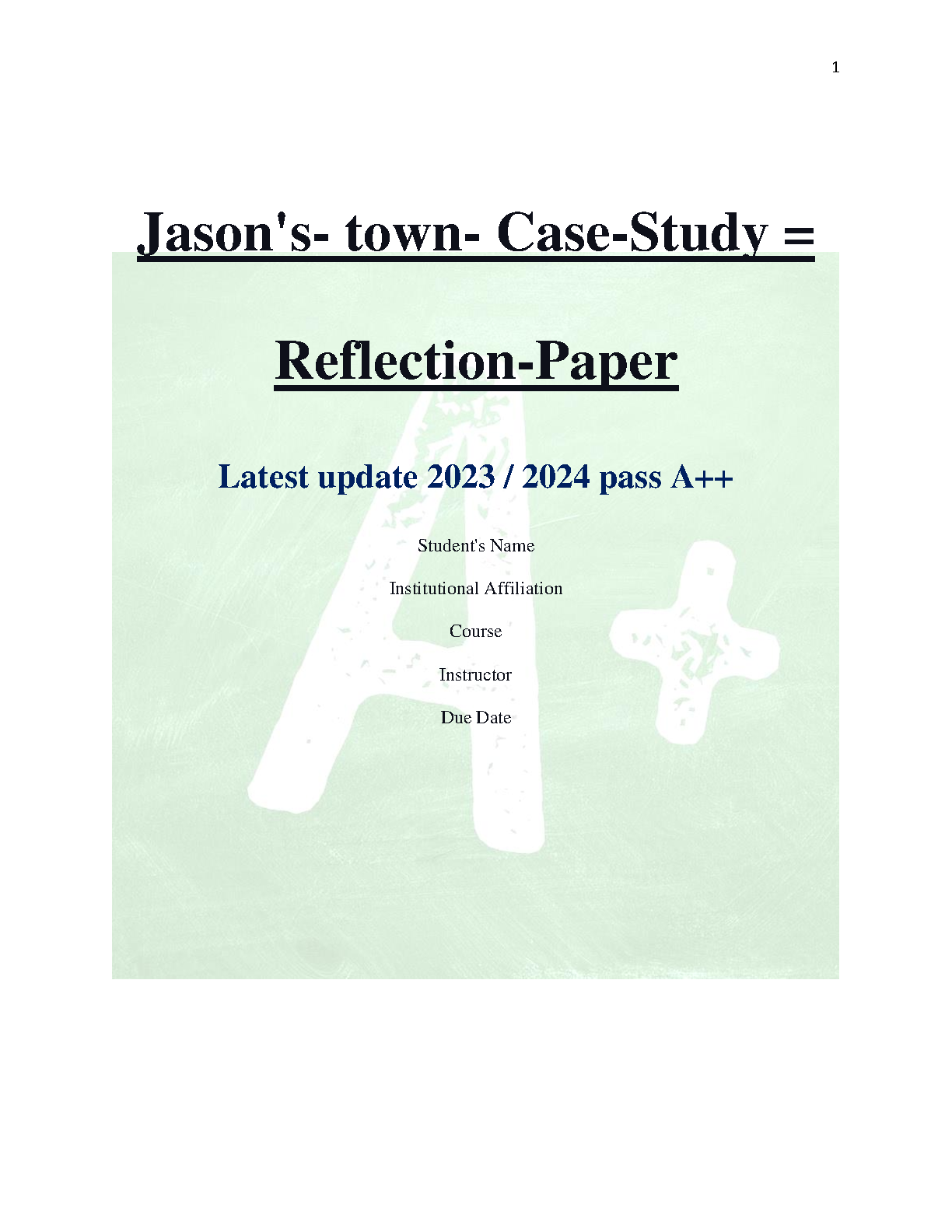 Mastering Jason's Town: A+ Case Study and Reflection Paper Guide 2025/2026