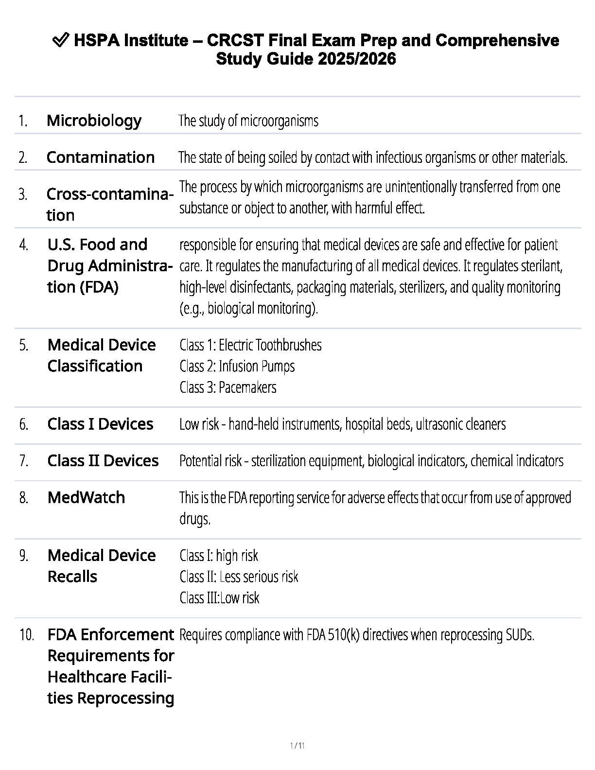 Latest 2025/2026 HSPA CRCST Final Exam Prep: A Comprehensive Study Guide by the Healthcare Sterile Processing Association to Guarantee a First-Time Pass