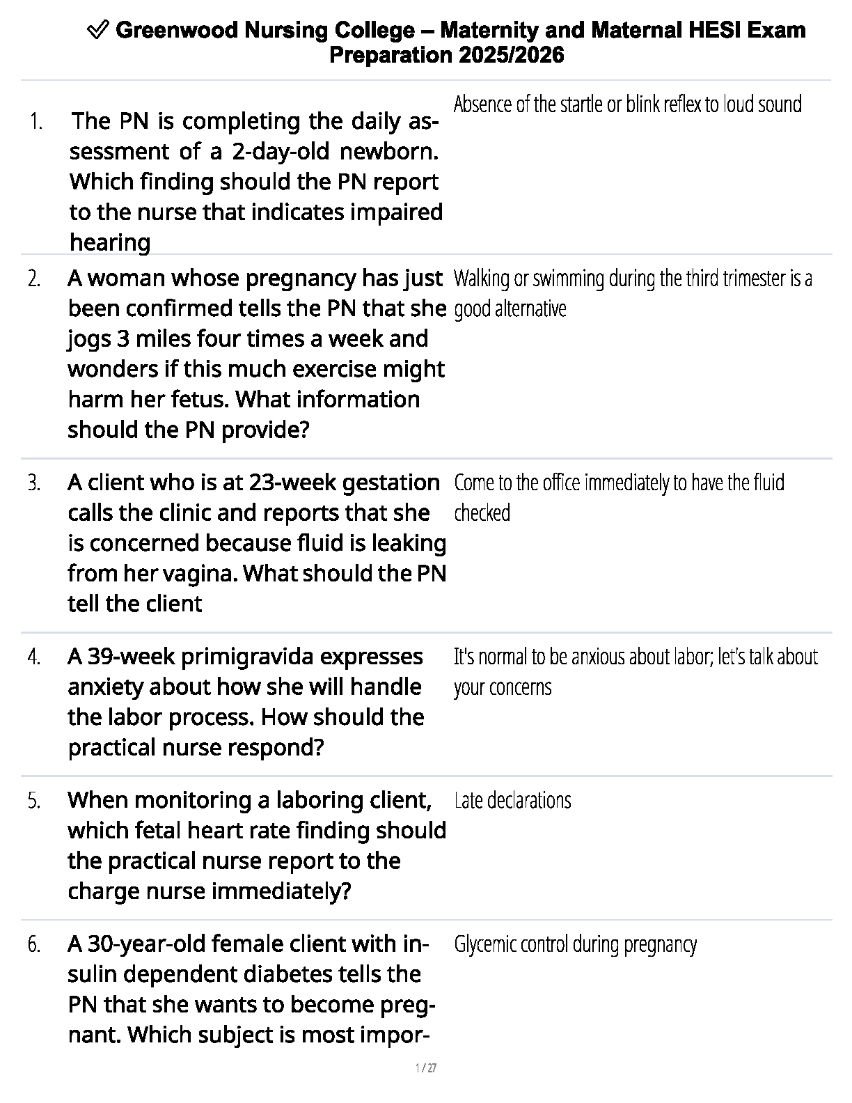 Master the Maternity and Maternal HESI exam with this comprehensive preparation guide from Greenwood Nursing College, fully updated for the 2025/2026 academic year. This essential study tool features a detailed collection of practice questions and answers covering all critical topics, from neonatal assessment to high-risk pregnancies and labor management. Designed to mirror the actual exam format, this guide will build your confidence, sharpen your clinical reasoning, and ensure you're fully prepared to pass on your very first attempt. Stop worrying about resits and start your journey to HESI success today!