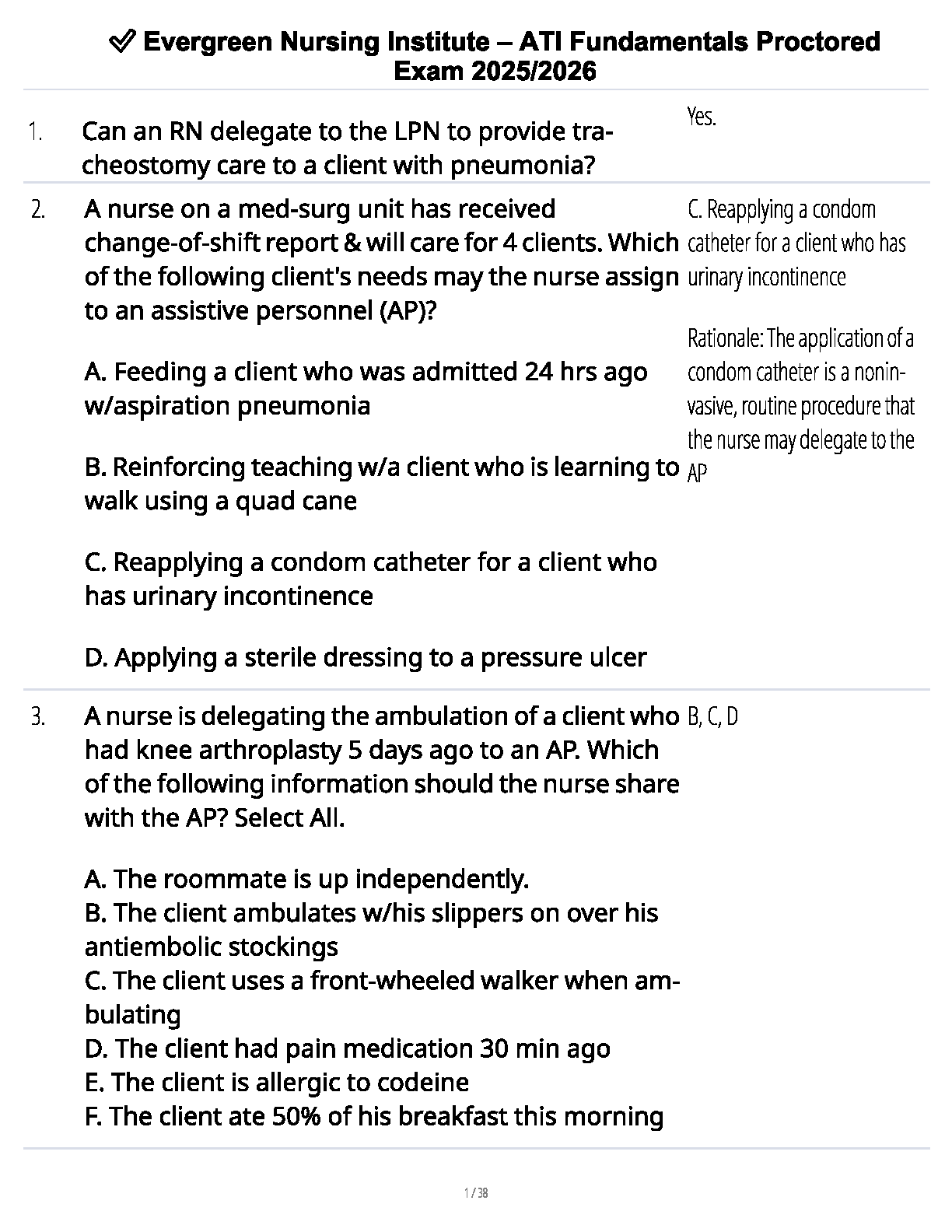 Unlock success in your nursing program with the ultimate study resource for the ATI Fundamentals Proctored Exam, updated for the 2025/2026 academic year. This comprehensive test bank provides a full spectrum of exam-style questions, complete with 100% accurate answers and in-depth rationales. It's the perfect tool to solidify your understanding of core nursing principles, from patient care and safety to delegation. Prepare effectively, boost your confidence, and ensure you pass your exam on the very first attempt, avoiding the stress of resits. Download now and take the first step towards acing your fundamentals.
