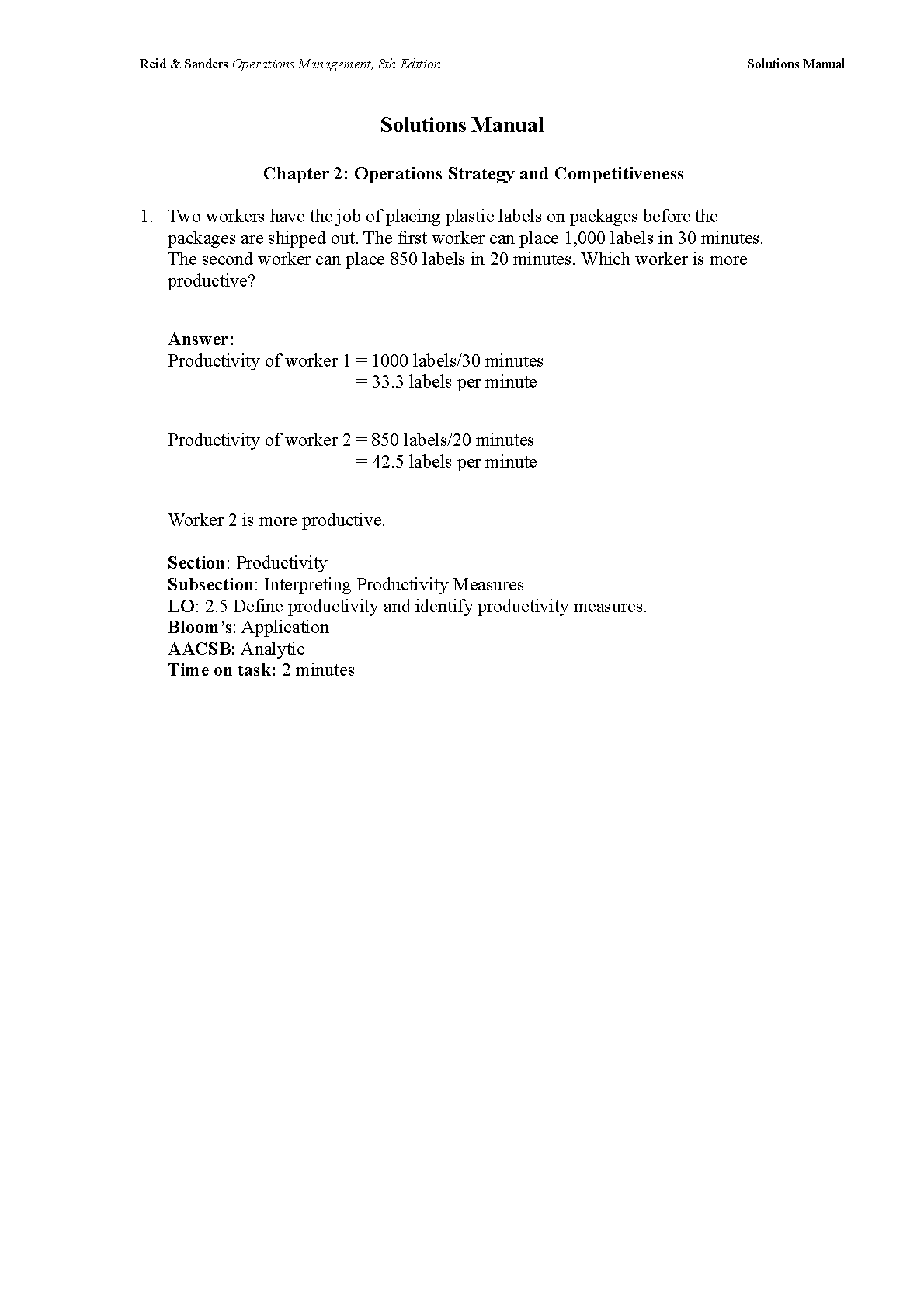 Solutions Manual for Operations Management: An Integrated Approach, 8th Edition by R. Dan Reid and Nada R. Sanders (All Chapters 1-16)