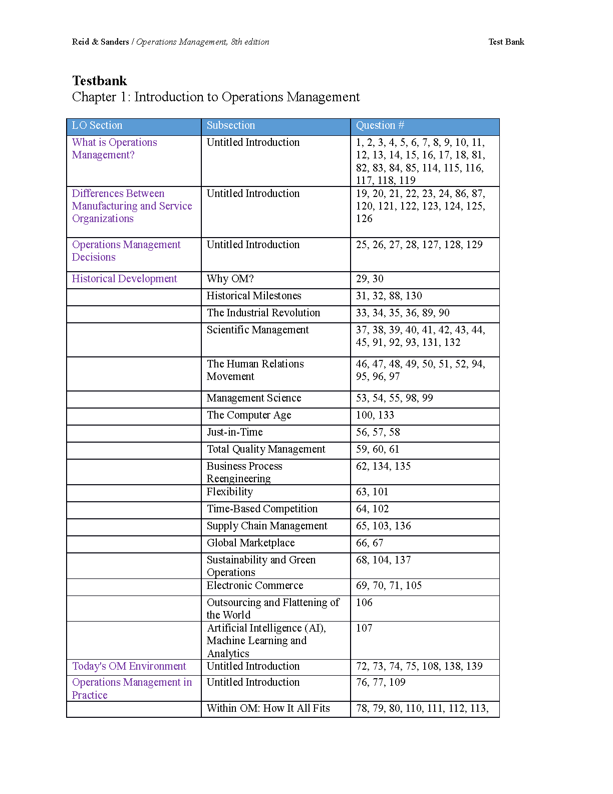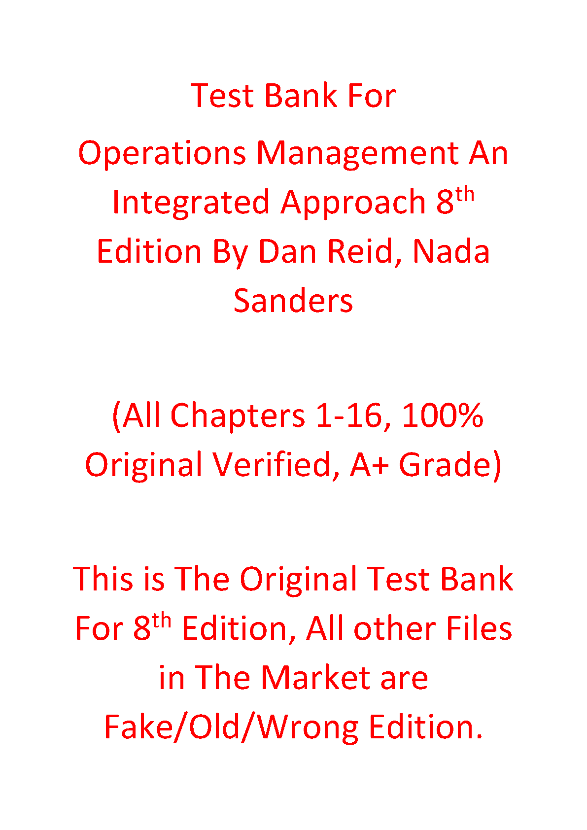 Test Bank for Operations Management: An Integrated Approach, 8th Edition by R. Dan Reid, Nada R. Sanders