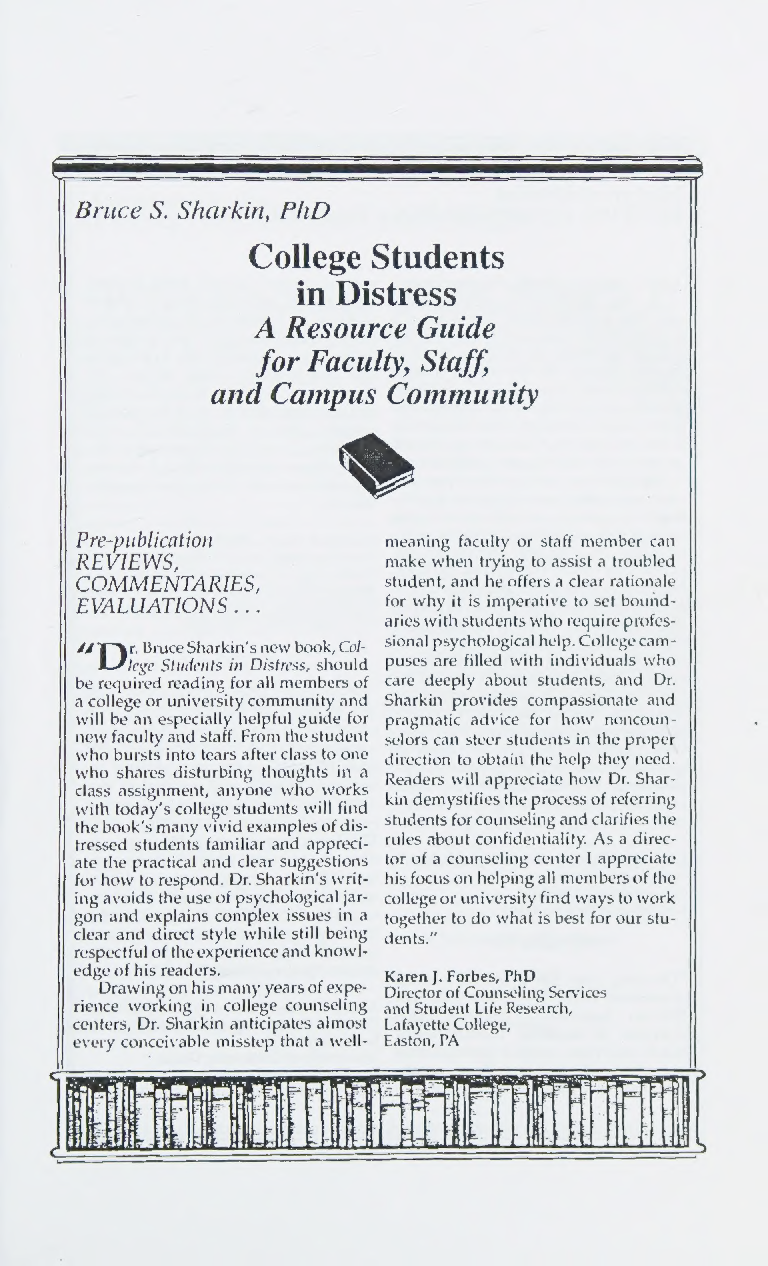 College Students in Distress (First Edition) by Bruce S. Sharkin - The Essential 2025/2026 Guide for Faculty to Boost Student Success and Prevent Academic Failure.