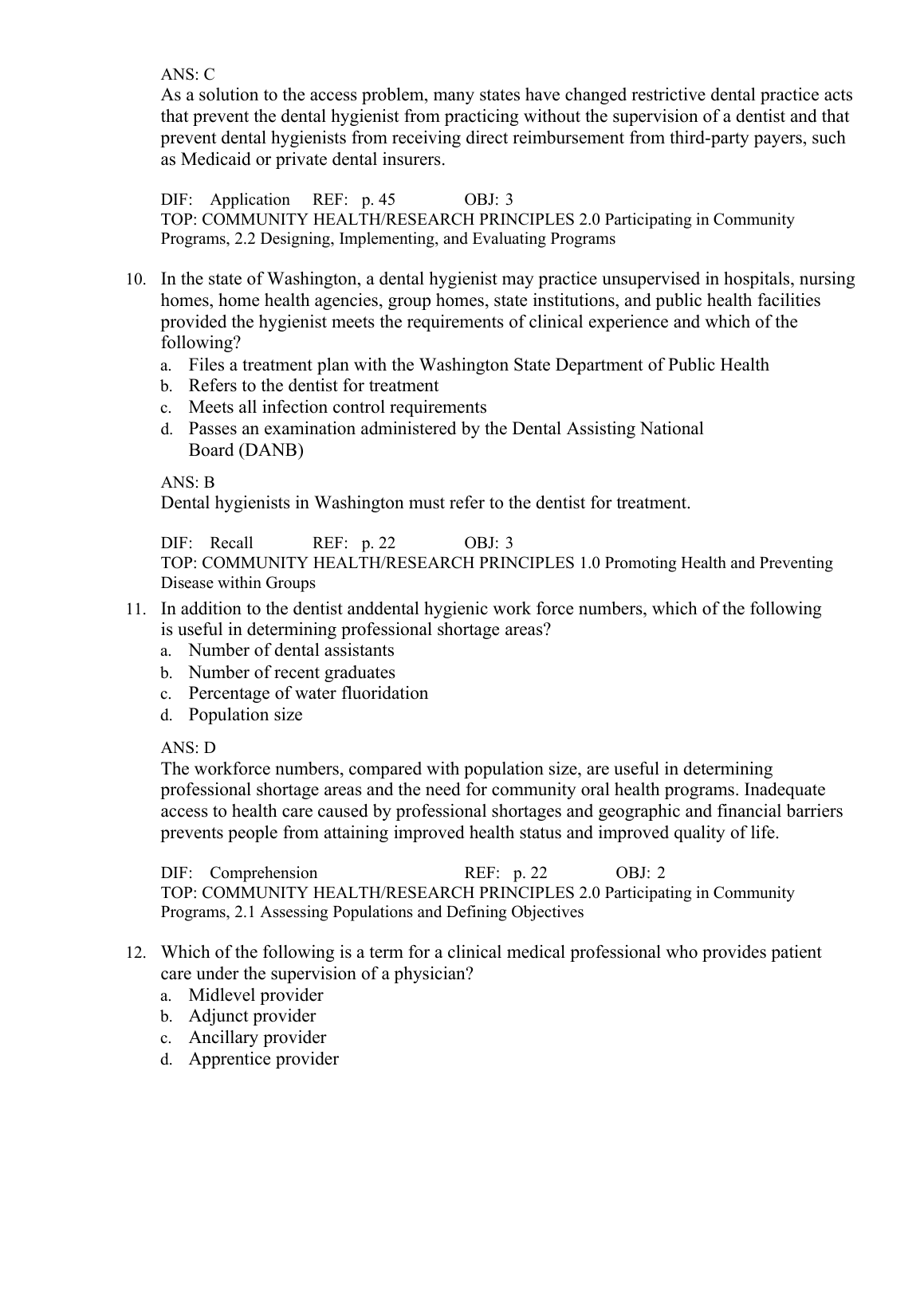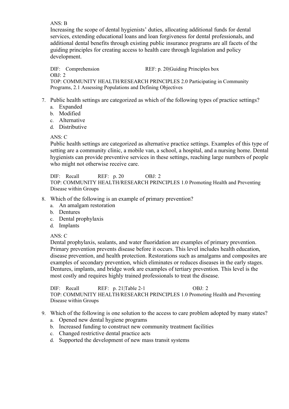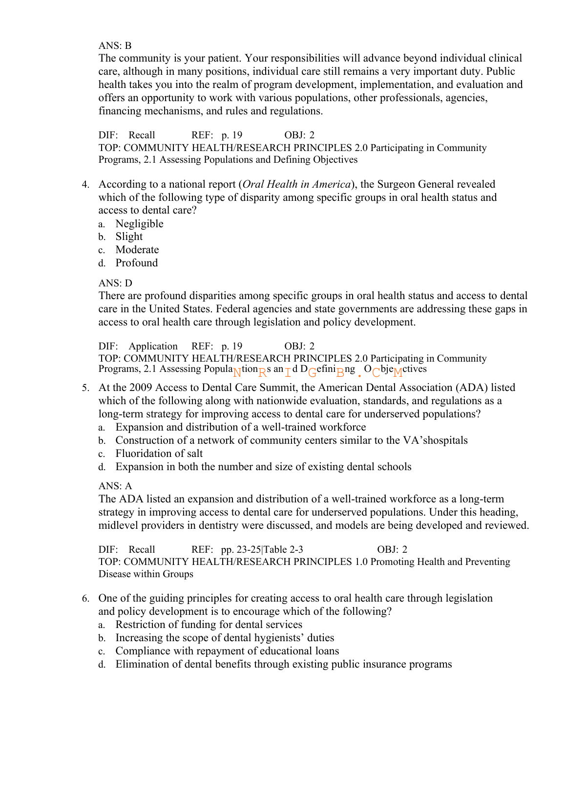 COMMUNITY ORAL HEALTH PRACTICE FOR THE DENTAL HYGIENIST 4TH EDITION BEATTY TEST BANK