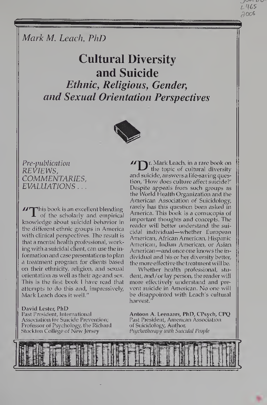 Cultural Diversity and Suicide: Ethnic, Religious, Gender, and Sexual Orientation Perspectives, 1st Edition by Mark M. Leach - Latest 2025/2026 Study Guide to Pass Exams
