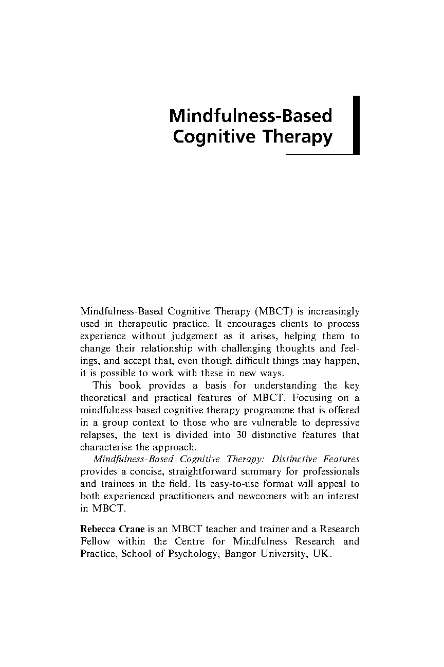 Mindfulness-Based Cognitive Therapy: The CBT Distinctive Features Series, 1st Edition by Rebecca Crane - Updated 2025/2026 Exam Success Guide