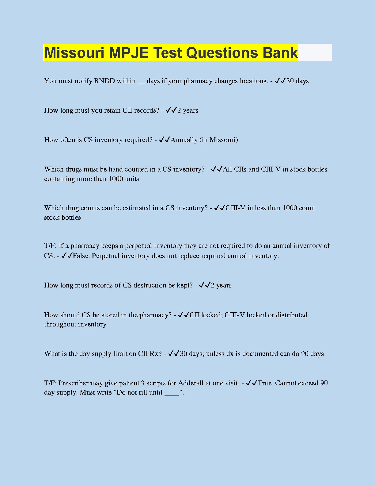 Missouri MPJE Test Questions Bank BRAND NEW SOLUTION RATED A+ . DOWNLOAD on www.hackedexams.com INSTANTLY.