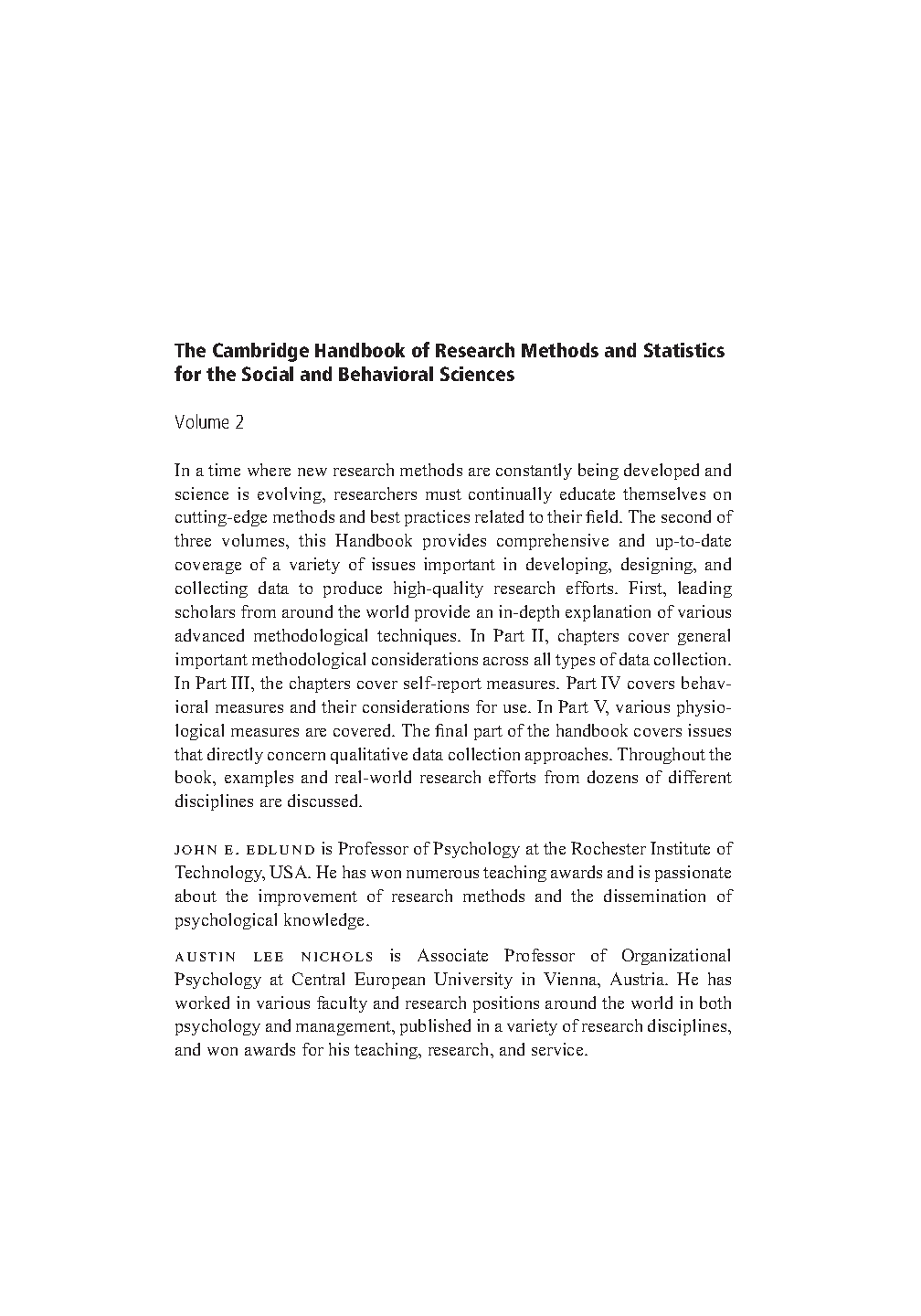 The Cambridge Handbook of Research Methods and Statistics for the Social and Behavioral Sciences, Volume 2 by John E. Edlund, Austin Lee Nichols - 2025/2026 Exam Success Guide