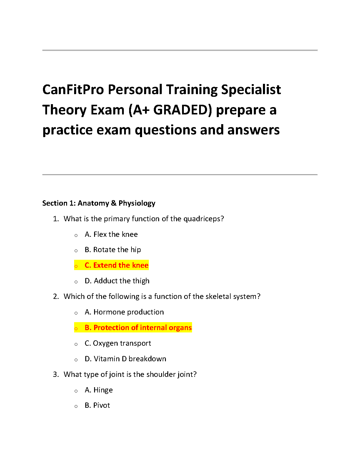 Prepare to ace your CanFitPro Personal Training Specialist (PTS) Theory Exam with this comprehensive A+ graded test bank. Aligned with the official 'Foundations of Professional Personal Training, 3rd Edition' by Macdonald & Lawlor, this study guide features a vast collection of practice exam questions with verified answers. Cover all critical topics, from Anatomy & Physiology to program design, and master the material needed to succeed. This is the ultimate resource to help you pass your certification on the first attempt, avoid costly resits, and confidently start your career as a personal trainer.