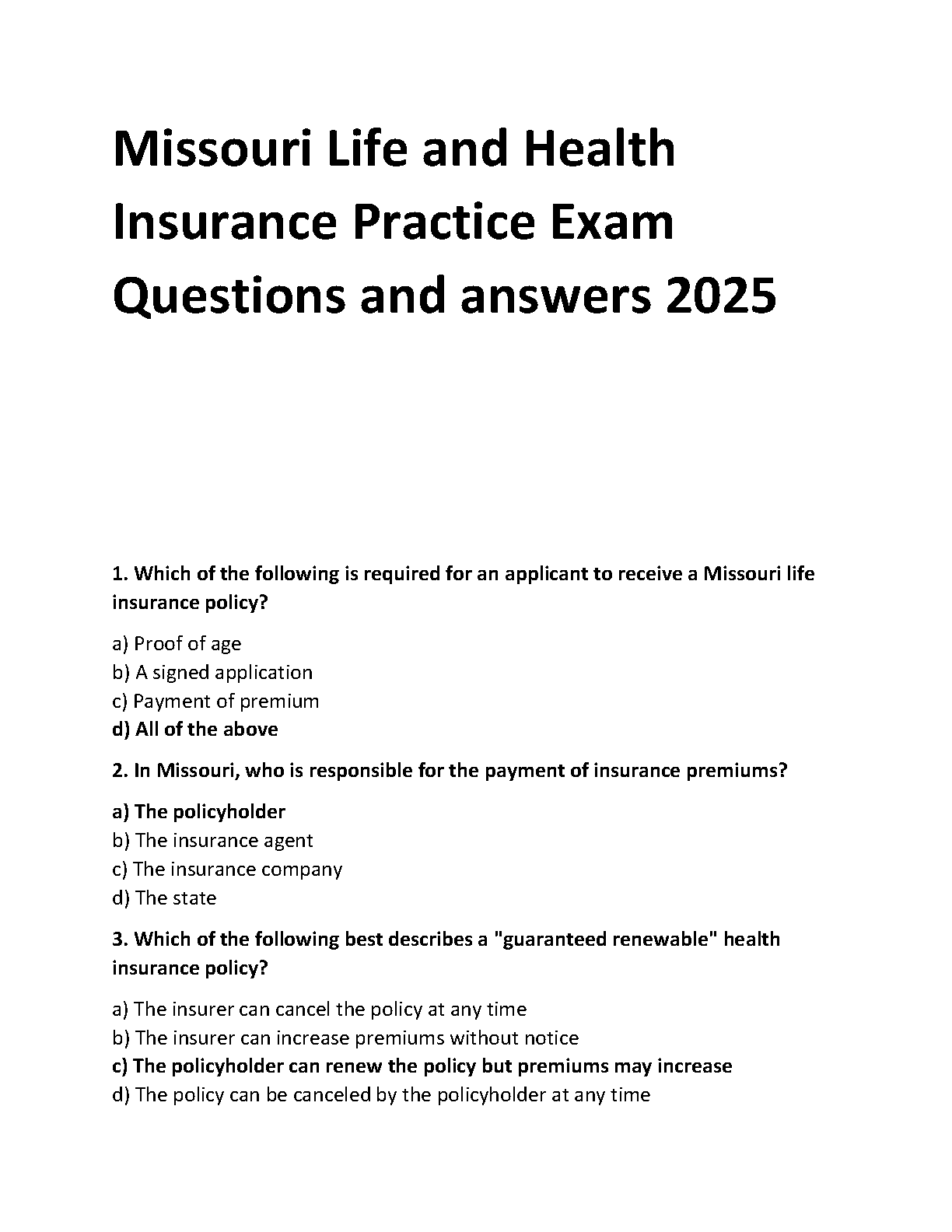 Missouri Life and Health Insurance Exam 2025 Test Bank: A Comprehensive Q&A Guide to Pass on Your First Try