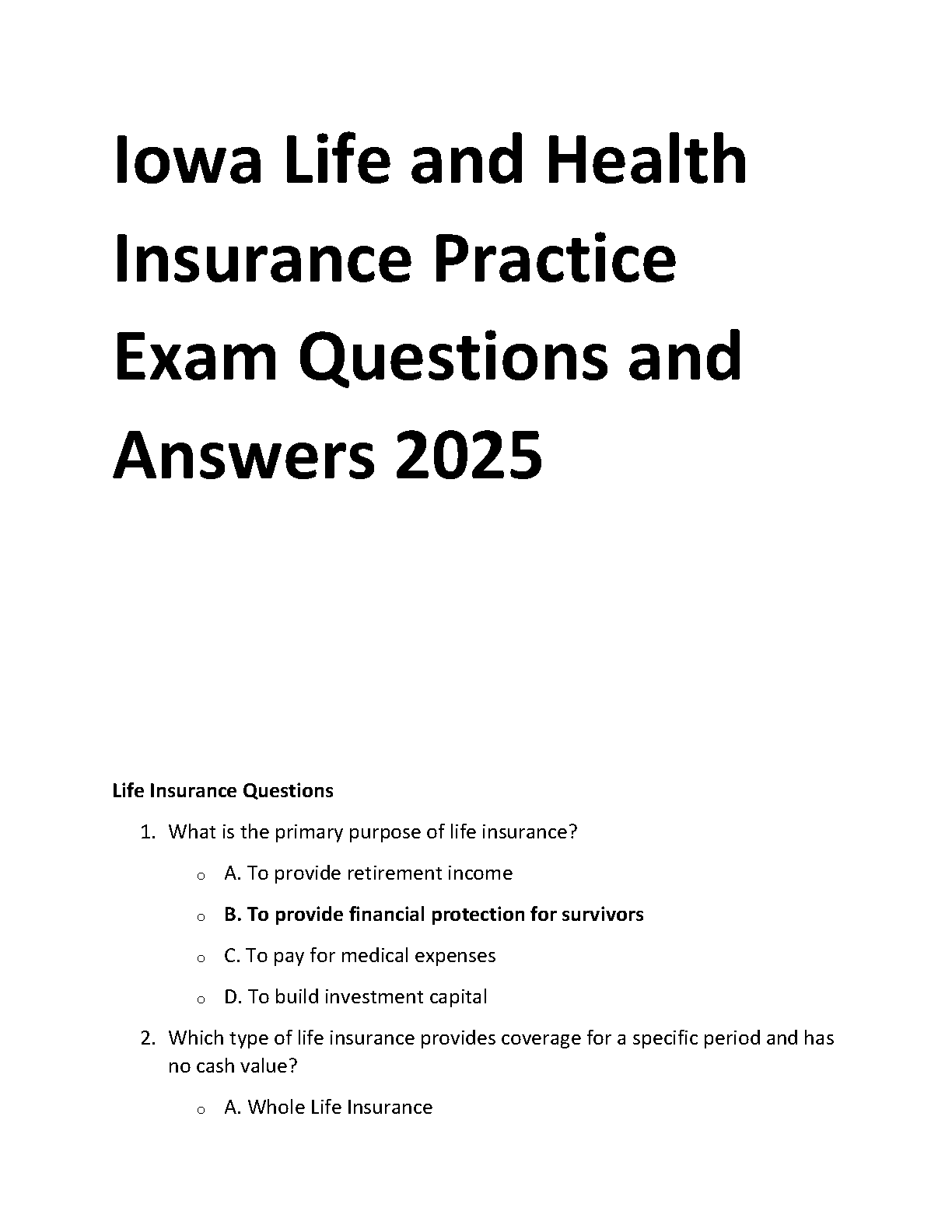 Iowa Life and Health Insurance License Exam Test Bank 2025-2026: Updated Questions & Answers to Pass on the First Attempt