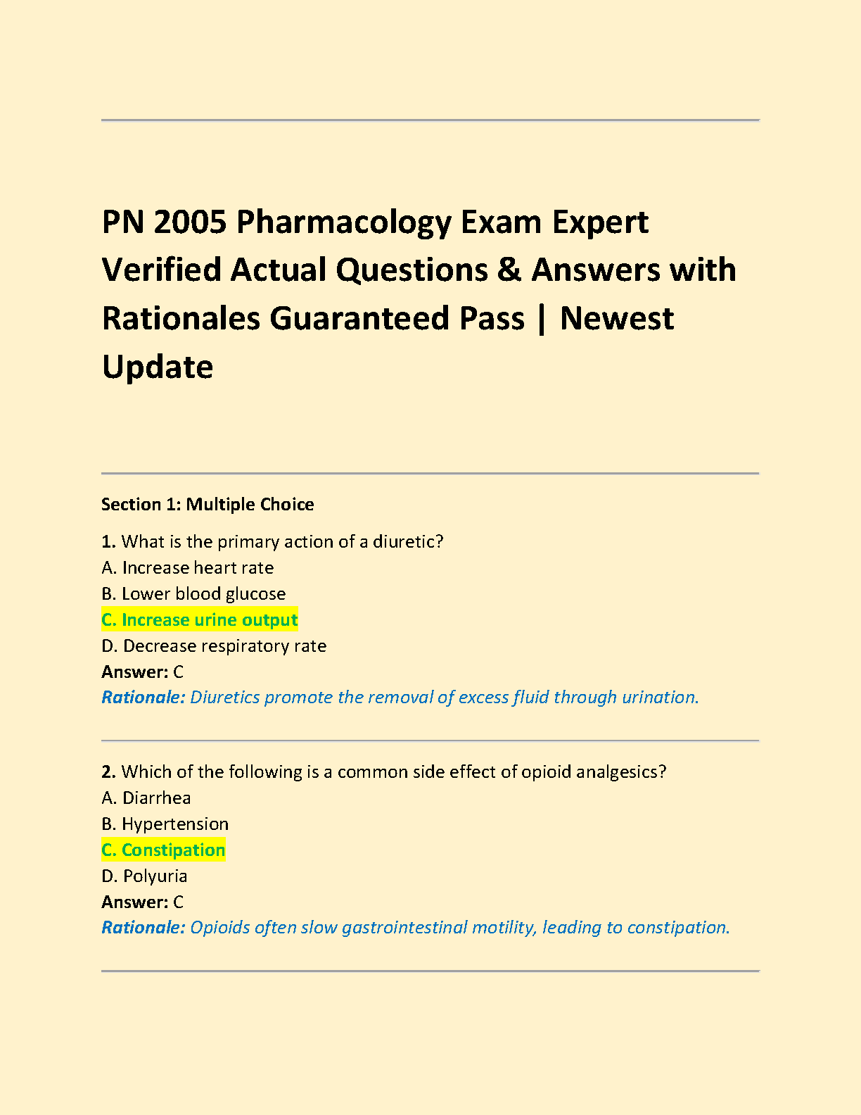 PN 2005 Pharmacology Test Bank: Comprehensive Q&A with In-Depth Rationales