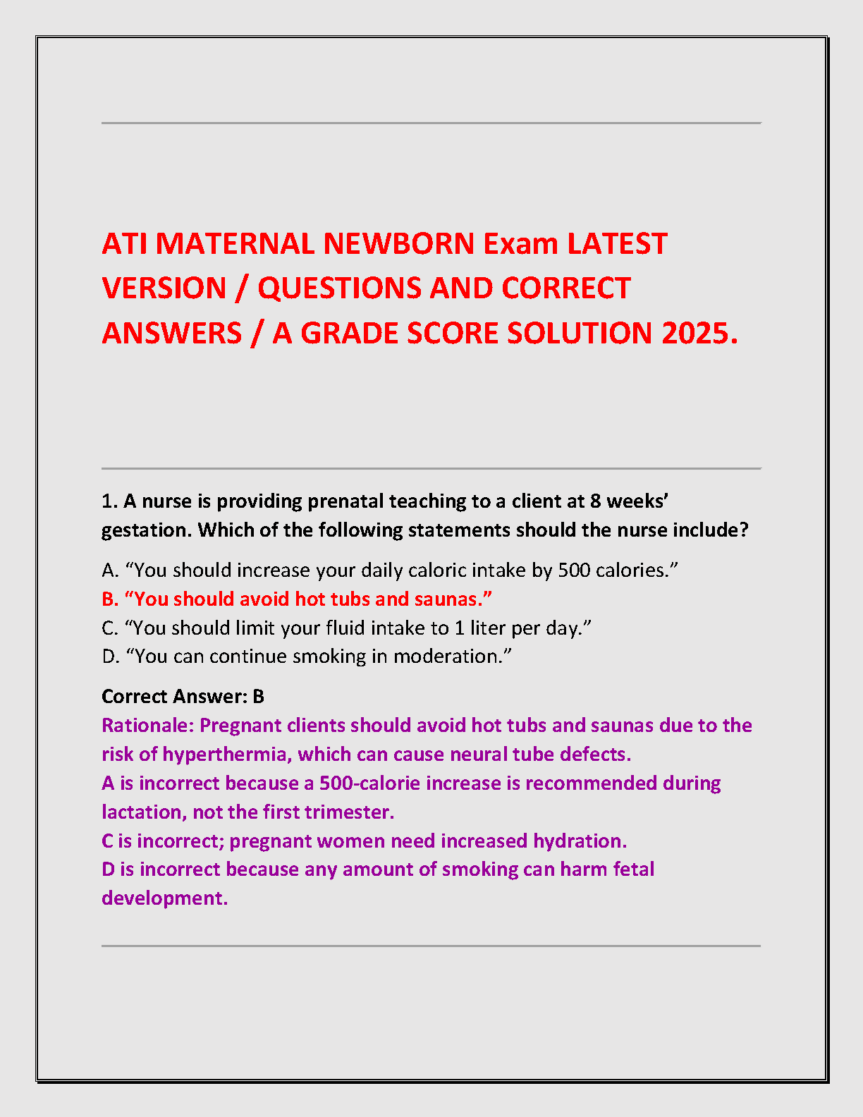 ATI Maternal Newborn Exam 2025 Test Bank: A-Grade Study Guide with Verified Questions, Answers, and Rationales
