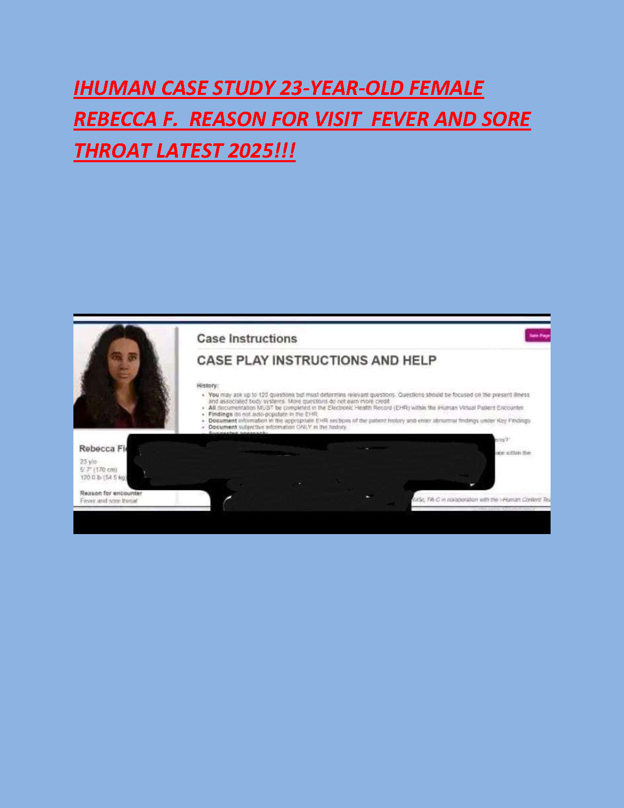 Master the iHuman virtual patient encounter with this comprehensive guide for the Rebecca F. case study. This resource, updated for the 2025/2026 academic year, provides a detailed walkthrough for the 23-year-old female presenting with fever and sore throat. It's expertly crafted to help you ask the right questions, perform the correct examinations, and reach the accurate diagnosis, ensuring you pass your simulation and related exams on the very first try.