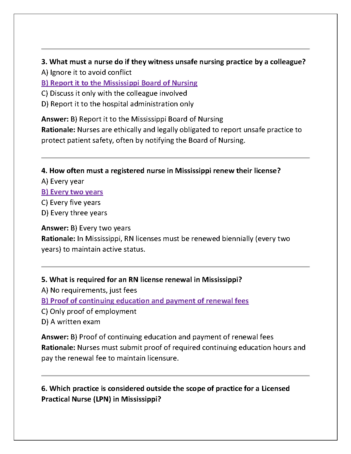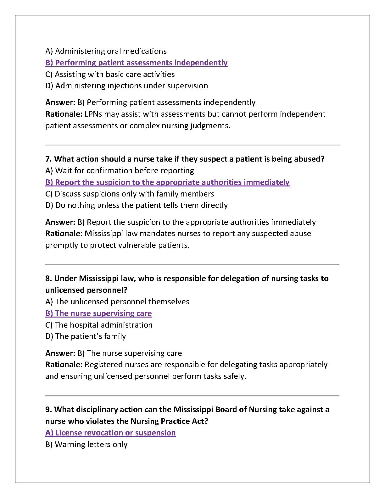 Pass the Mississippi Nursing Jurisprudence Exam 2025/2026: A Complete Test Bank with Questions, Answers & Rationales