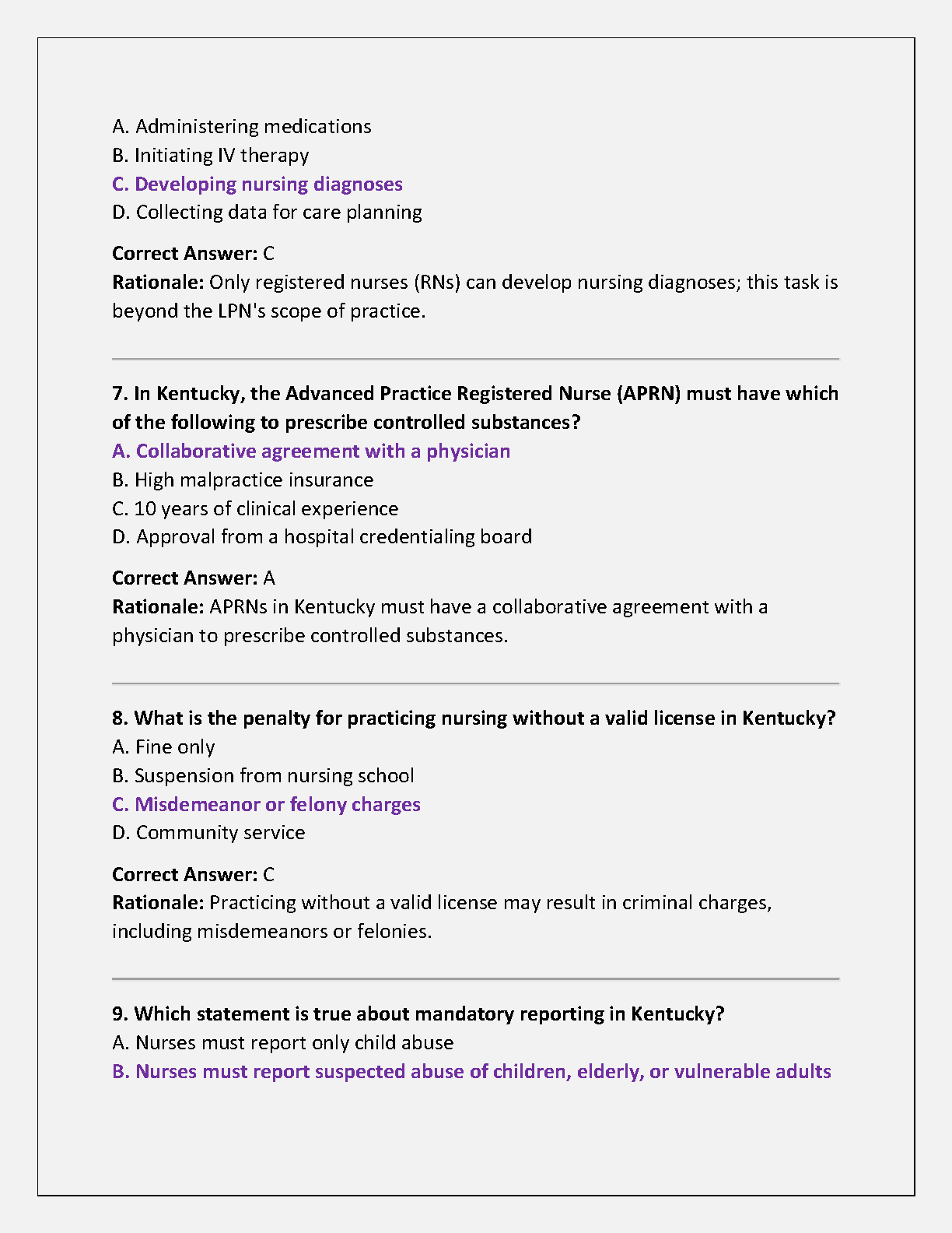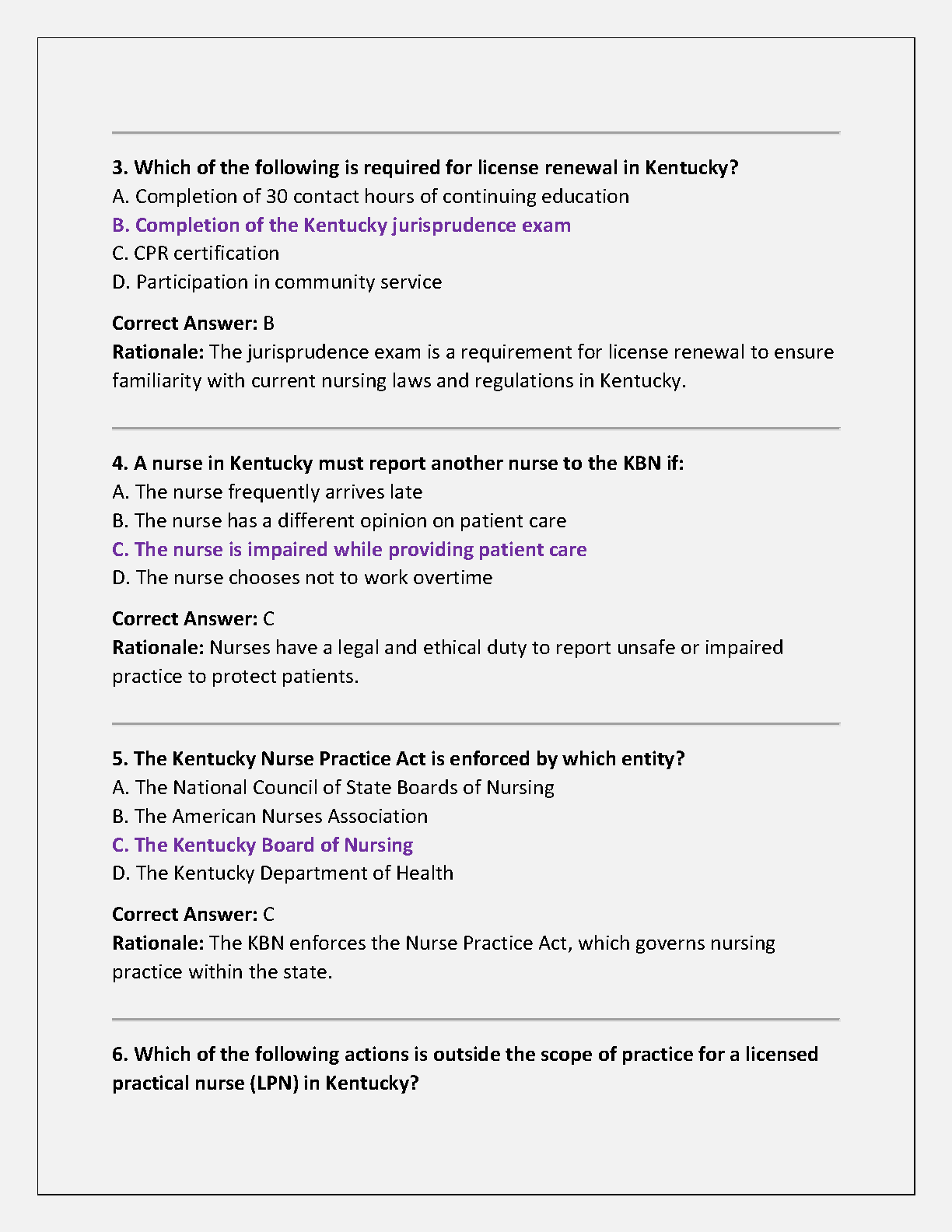 Kentucky Nursing Jurisprudence Exam 2025 Test Bank: Comprehensive Practice Questions with Verified Answers & Rationales for First-Attempt Success