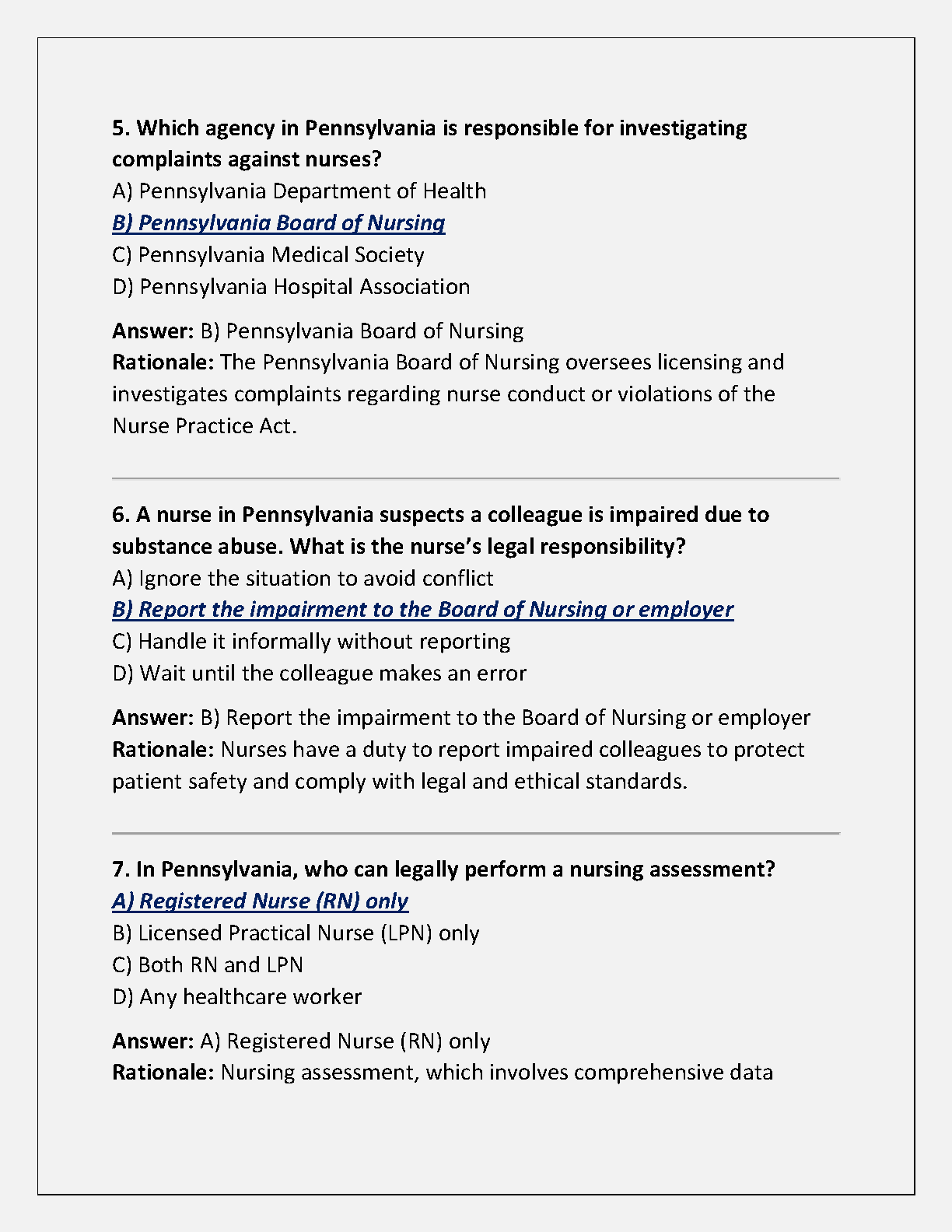 Pennsylvania Nursing Jurisprudence Exam 2025: Test Bank with Practice Questions, Verified Answers & Rationales