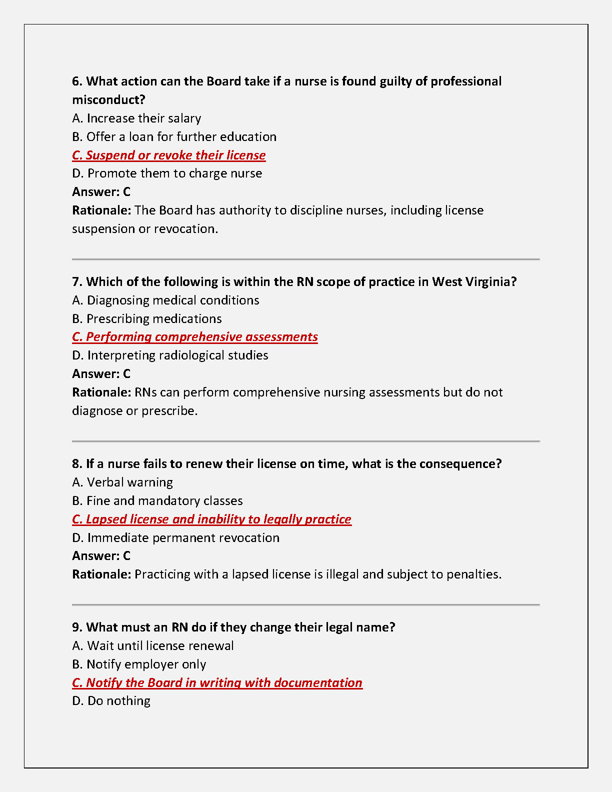 West Virginia Nursing Jurisprudence Exam Test Bank 2025/2026: Verified Questions, Answers, and Rationales for First-Try Success