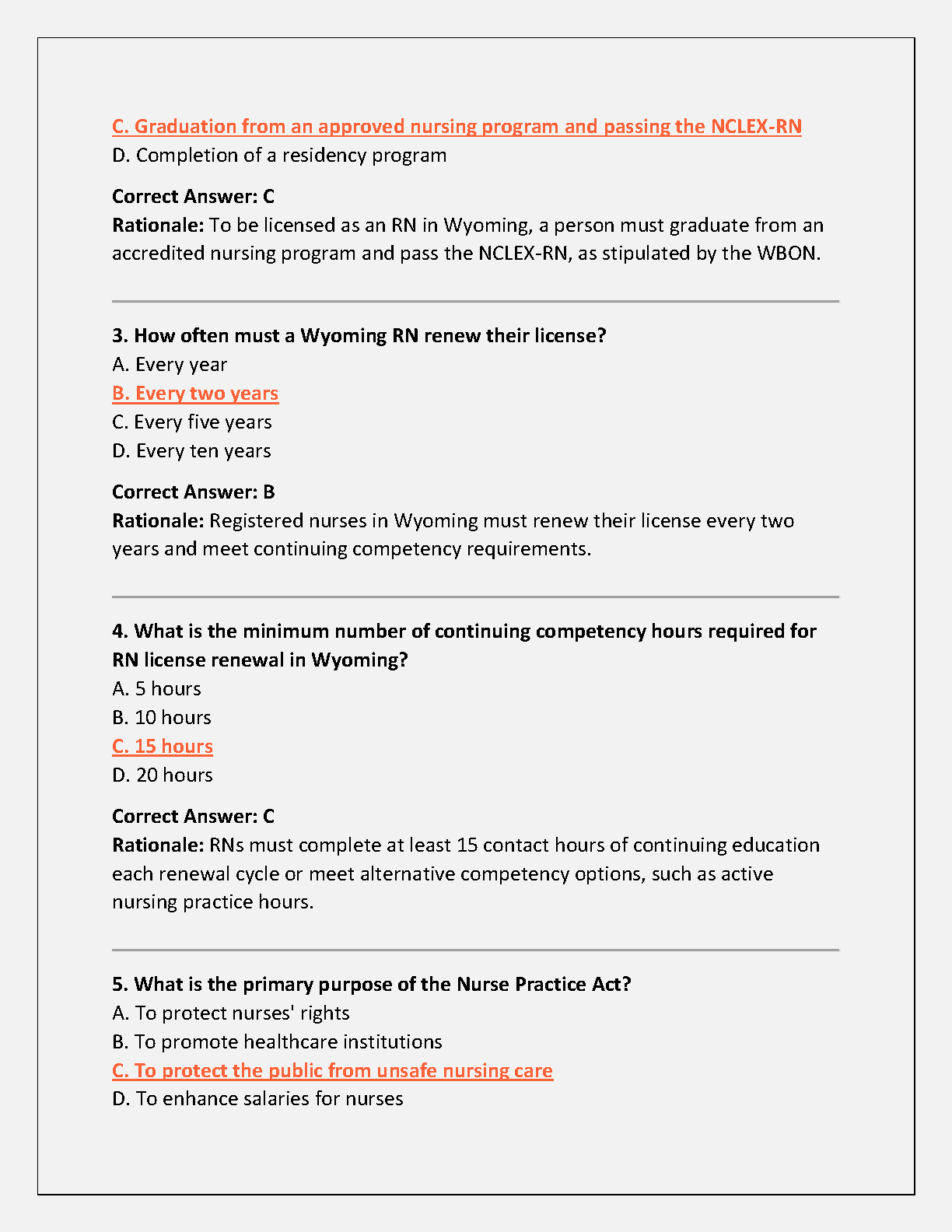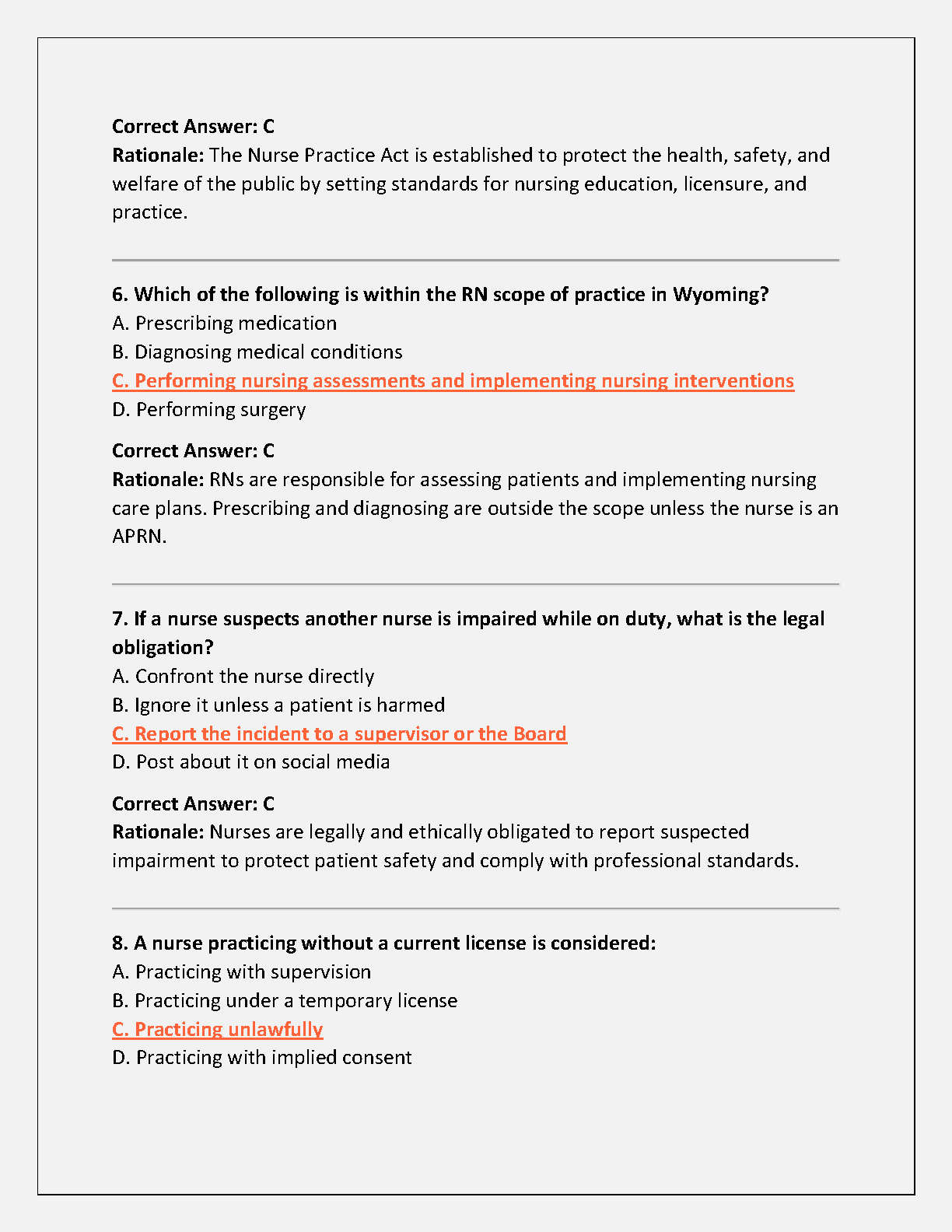 Wyoming Nursing Jurisprudence Exam Test Bank 2025: Comprehensive Practice Questions with Verified Answers & Rationales