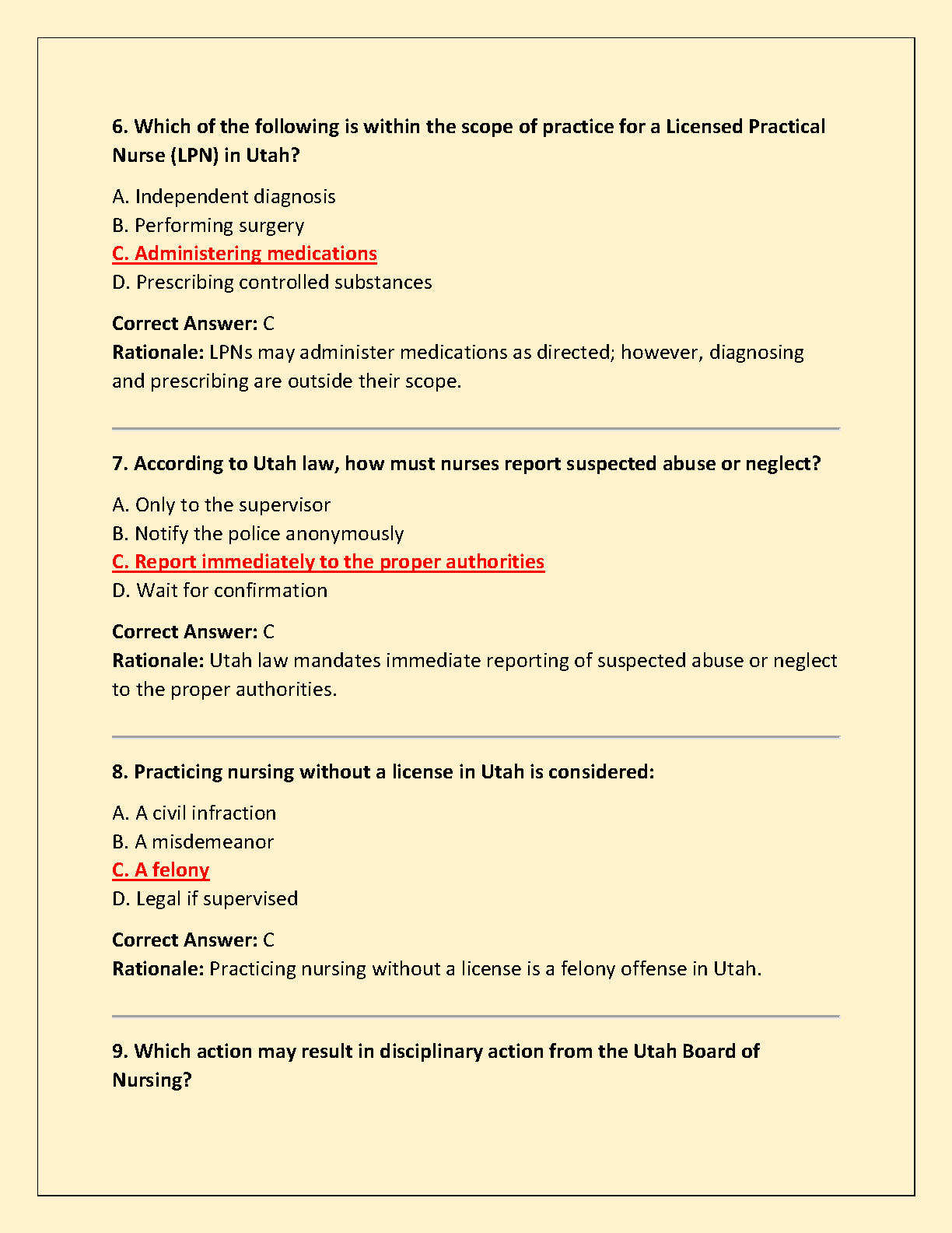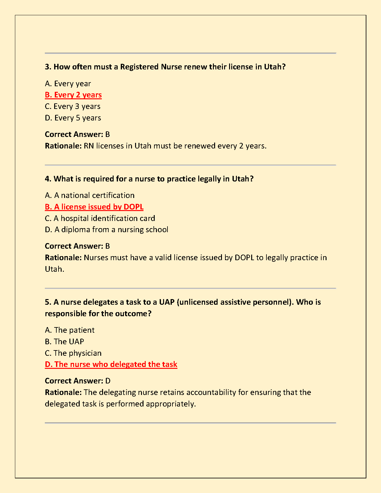 Utah Nursing Jurisprudence Practice Exam 2025-2026: Comprehensive Q&A with Rationales to Pass Your Test on the First Try