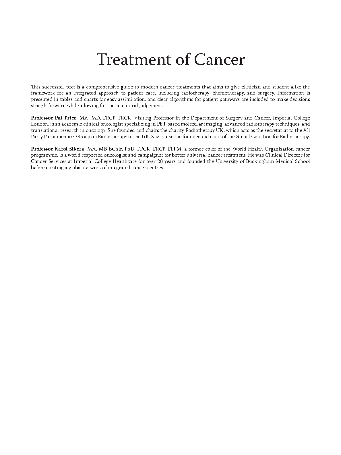 Unlock success in your oncology exams with the definitive guide for the 2025/2026 academic year, 'Treatment of Cancer, 8th Edition'. This latest edition, expertly edited by Price, Sikora, and Illidge, is your key to mastering the complex field of cancer management. It offers a thoroughly updated and practical overview of all cancer treatments, including cutting-edge immunotherapy, targeted therapies, and the newest radiotherapy techniques. Structured by cancer type for quick reference, this guide is designed to help you ace your exams on the first try and avoid resits. Gain the confidence and knowledge needed to excel in your medical career with this essential resource.
