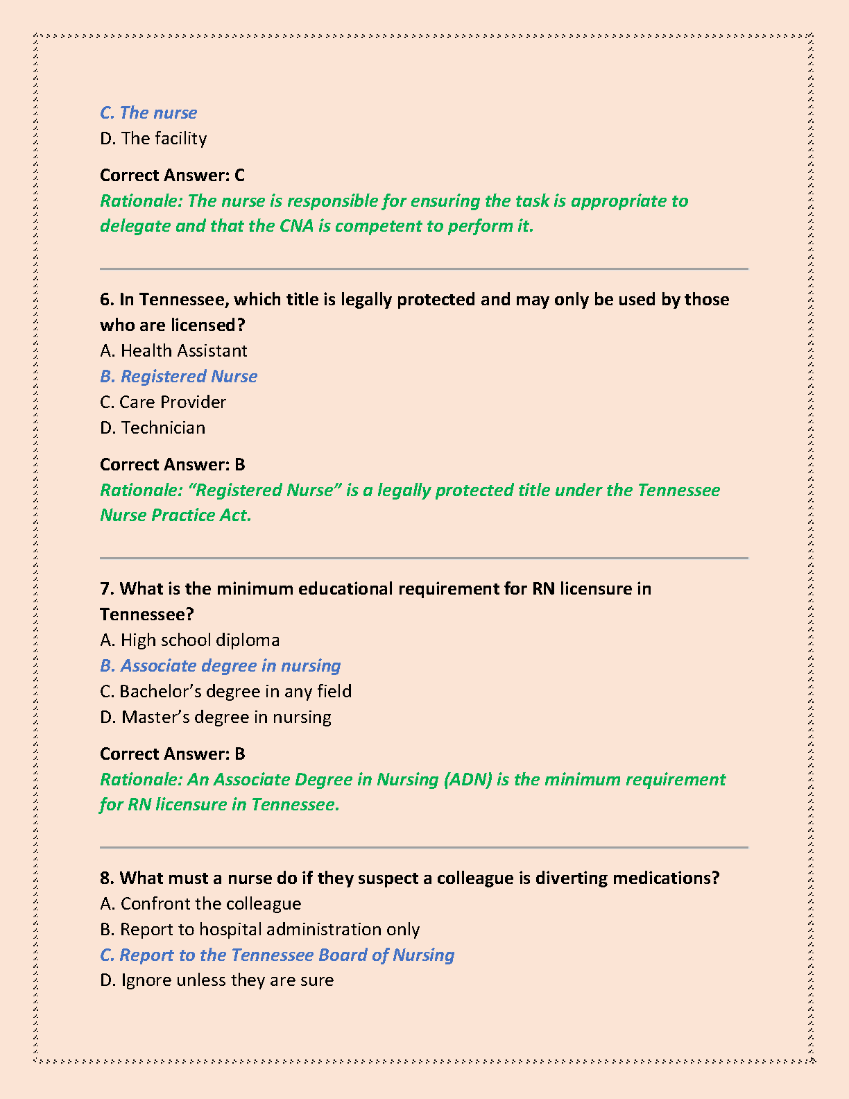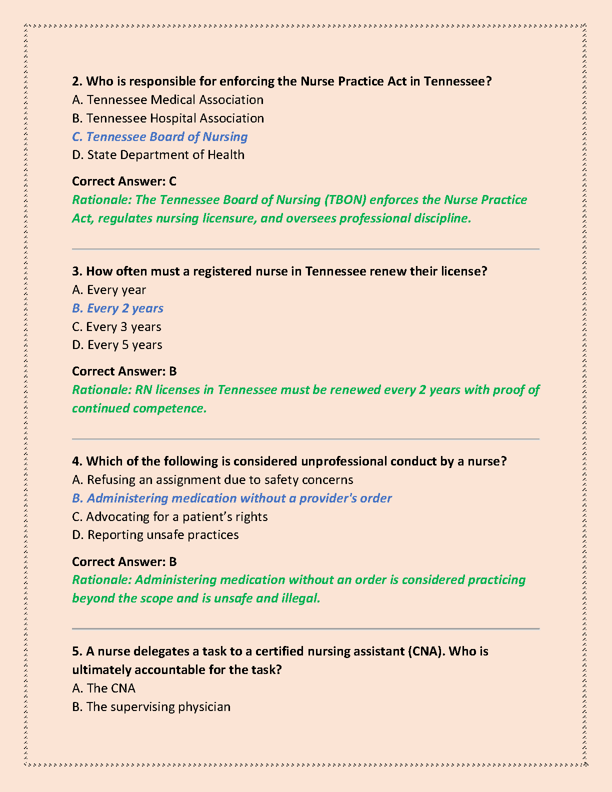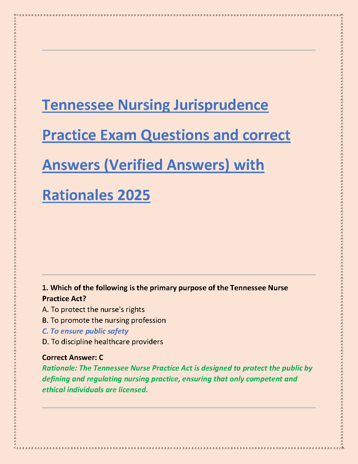Tennessee Nursing Jurisprudence Exam 2025-2026: The Ultimate Study Guide with Practice Questions, Verified Answers, and Detailed Rationales for First-Attempt Success