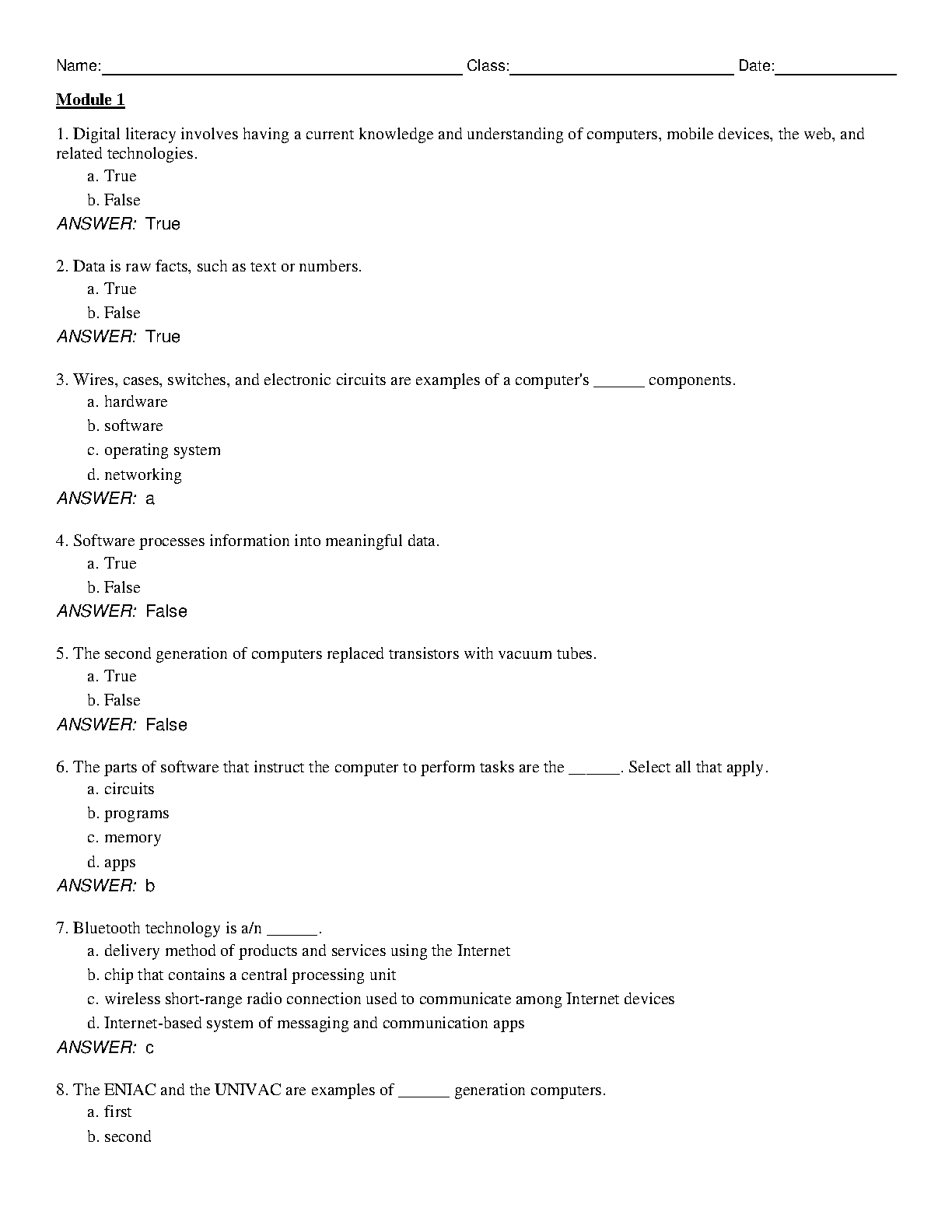 Test Bank for Technology for Success: Computer Concepts, 2nd Edition by Mark Ciampa, Mark Frydenberg, Misty E. Vermaat